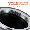 Wykonany z trwałego mosiądzu i aluminium, adapter K&F Concept zapewnia stabilność i precyzję działania w konfiguracji z najróżniejszymi aparatami Sony E i obiektywami M42. Dzięki zastosowaniu solidnych materiałów i starannemu wykonaniu możesz mieć pewność, że połączone urządzenia pozostaną na swoim miejscu, a Twoje zdjęcia nie stracą na jakości.