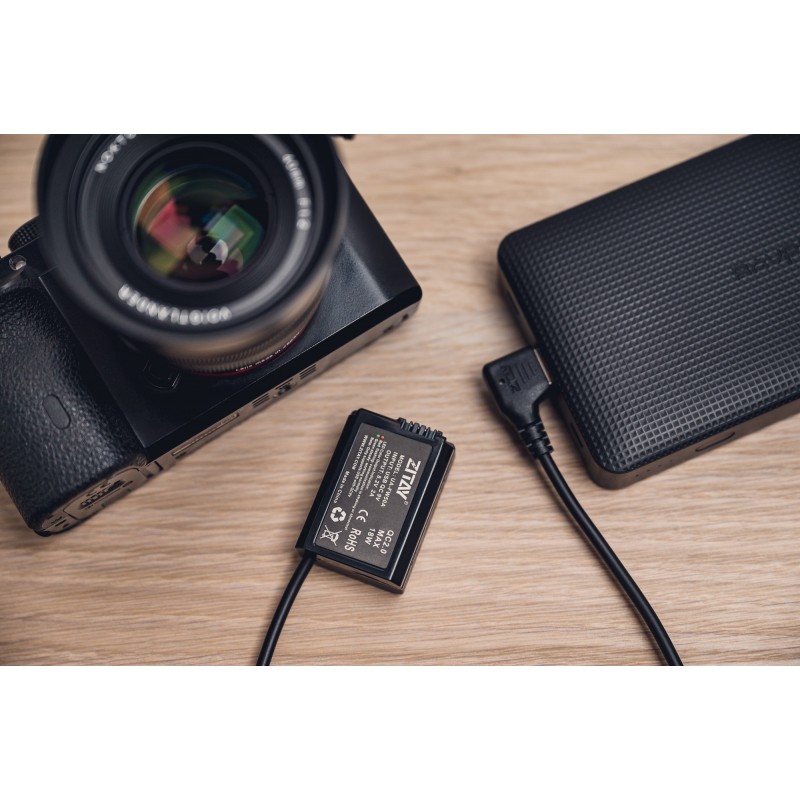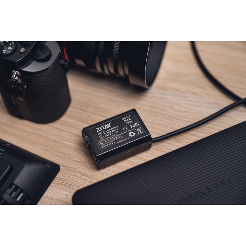 Adapter zasilania Zitay USB do NP-FW50 - Typ 2 stworzono z myślą o użytkownikach aparatów Sony A7S, A7S2, A7M, A7M2 oraz A72. To idealne rozwiązanie dla osób, które nie mogą pozwolić sobie na wymianę akumulatora podczas nagrań na żywo, chcą zwiększyć maksymalny czas pracy urządzenia lub zależy im na jeszcze dłuższych ujęciach, realizowanych bez żadnych przerw. Ogniwo typu "dummy battery" wystarczy zainstalować w komorze baterii i podłączyć do power banku lub odpowiedniej ładowarki, wspierających standard QC2.0 lub QC3.0. Unikalna odwracalna wtyczka USB typu A zastosowana w adapterze pozwala wykluczyć problem włożenia jej do portu w złym kierunku. Dzięki precyzyjnemu odwzorowaniu akumulatora NP-FW50 masz pewność, że ogniwo nigdy nie zablokuje się w komorze baterii.