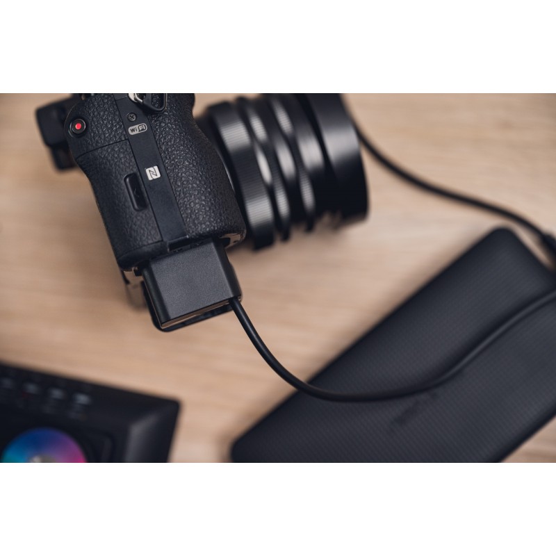 Legenda głosi, że wtyczką USB nie da się poprawnie trafić do portu za pierwszym razem. W tym przypadku będzie to możliwe! 63-centymetrowy przewód, którym podłączysz adapter Zitay USB do NP-FW50 - Typ 2 do źródła zasilania, zakończono specjalną odwracalną wtyczką. Nie da się włożyć jej do gniazda w złym kierunku! Ta innowacja pozwoli Ci zaoszczędzić wielu frustrujących chwil. Dodatkowo wtyk USB typu A ułożony jest pod kątem 90° względem przewodu. Dzięki temu kabel mniej odstaje od zasilacza lub obudowy power banku, co znacznie ułatwia zachowanie porządku wszędzie tam, gdzie fotografujesz lub nagrywasz filmy.