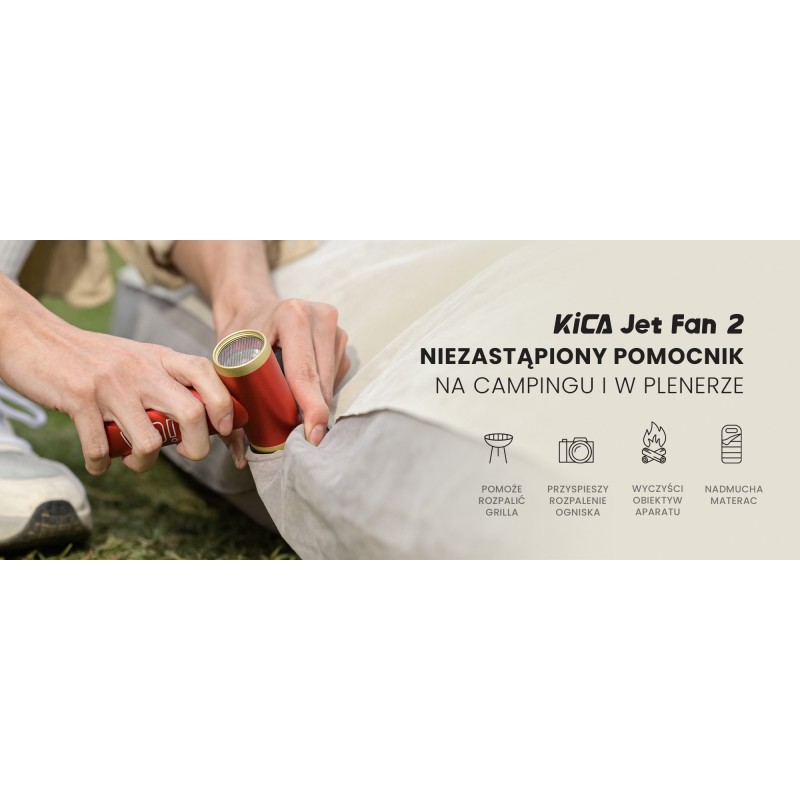 FeiyuTech KiCA JetFan 2 to urządzenie, którego nie może zabraknąć w twoim ekwipunku, gdy wybierasz się pod namiot, na camping, wędrujesz z plecakiem lub odpoczywasz na plaży. Wielofunkcyjna dmuchawa pozwoli z łatwością oczyścić koc piknikowy z liści, usunąć piasek z ręcznika, pozbyć się ściółki leśnej gromadzącej się w zakamarkach namiotu, a także wysuszyć buty oraz skarpetki. Z tym kieszonkowym urządzeniem nie nadwyrężysz też swoich płuc podczas rozpalania grilla.