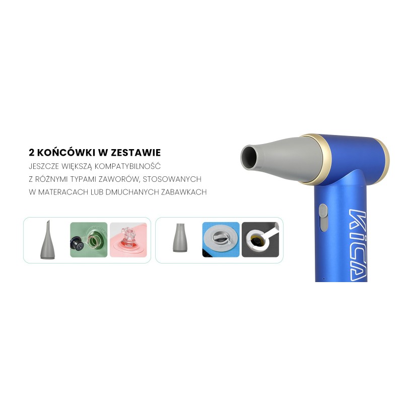 W zestawie z dmuchawą wielofunkcyjną FeiyuTech KiCA JetFan 2 otrzymujesz nie jedną, a dwie końcówki zwężające wylot powietrza. Zapewnia to jeszcze większą kompatybilność z różnymi typami zaworów, stosowanych w materacach lub dmuchanych zabawkach. Końcówki wykonano z mocnego i przyjemnego w dotyku materiału. Solidne gwinty zapewnią trwałe połączenie z dmuchawą.