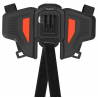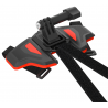 Instalacja mocowania jest prosta i nie wymaga użycia narzędzi. Wystarczy przyłożyć uchwyt do dolnej części kasku, przeciągnąć taśmy mocujące wokół jego wnętrza i zacisnąć je na rzepach. Następnie instalujemy kamerę za pomocą śruby montażowej typu GoPro (w zestawie). Maksymalna długość paska wynosi 22 cm, co pozwala dopasować uchwyt do różnych modeli kasków. Całość jest lekka, dobrze wyważona i gotowa do działania od razu po wyjęciu z pudełka.
