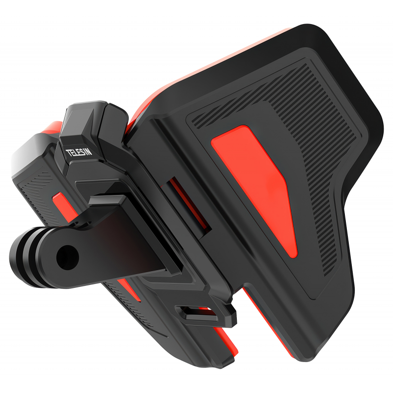 Telesin GP-HBM-MT2 to innowacyjne mocowanie na kask motocyklowy, które umożliwia stabilne nagrywanie z perspektywy pierwszej osoby. Dzięki elastycznym, składanym skrzydłom i grubym warstwom antypoślizgowego silikonu, uchwyt doskonale dopasowuje się do różnych typów kasków, zapewniając pewne mocowanie nawet w ekstremalnych warunkach. Kompatybilność z kamerami sportowymi (mocowanie typu GoPro) i smartfonami (po dokupieniu adaptera) czyni go uniwersalnym rozwiązaniem dla twórców działających w ruchu. Łatwa instalacja i oryginalny design zapewniający zgodność z setkami kasków sprawiają, że jest to wybór nie tylko funkcjonalny, ale i bardzo stylowy.