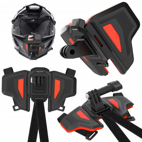 Mocowanie na kask motocyklowy Telesin GP-HBM-MT2 do kamer sportowych - pomarańczowe