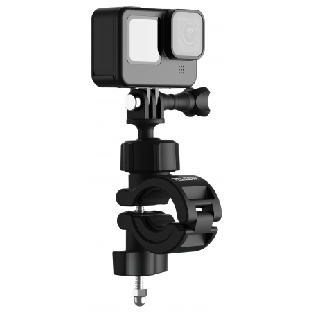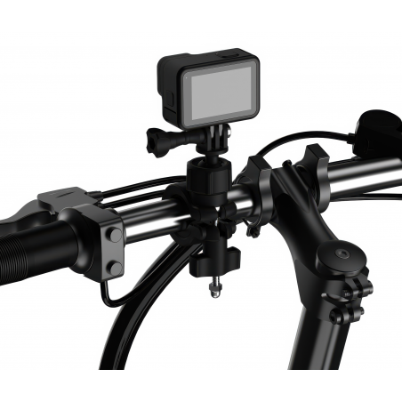 Telesin DJ-HBM-001 to wytrzymałe mocowanie na kierownicę roweru lub motocykla, które stabilizuje kamerę i tłumi drgania na wybojach, zapewniając gładkie ujęcia z trasy. Głowica kulowa 360° umożliwia ustawienie kadru z dowolnej perspektywy, a szybki montaż bez narzędzi pozwala łatwo przepinać uchwyt między pojazdami. Zacisk z płynną regulacją pasuje do rur 20–32 mm. Antypoślizgowa wkładka poprawia przyczepność i chroni przed zarysowaniami. Korpus z tworzywa oraz śruby ze stali nierdzewnej 304 zapewniają trwałość i odporność na korozję. Uchwyt jest kompatybilny m.in. z kamerami GoPro, Insta360, DJI oraz Yi. To idealny wybór na miejskie dojazdy, zjazdy na rowerze górskim i długie wyprawy. W zestawie śruba montażowa GoPro.
