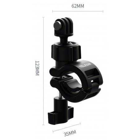 Montaż i demontaż uchwytu Telesin DJ-HBM-001 trwa zaledwie kilka sekund – wystarczy odkręcić pokrętło zaciskowe, dopasować mocowanie do kierownicy i dokręcić. Nie potrzeba śrubokrętów, kluczy ani dodatkowych akcesoriów. Takie rozwiązanie oszczędza czas i sprawia, że uchwyt świetnie sprawdza się w podróży lub podczas częstych zmian sprzętu. W zestawie znajduje się też standardowa śruba typu GoPro.