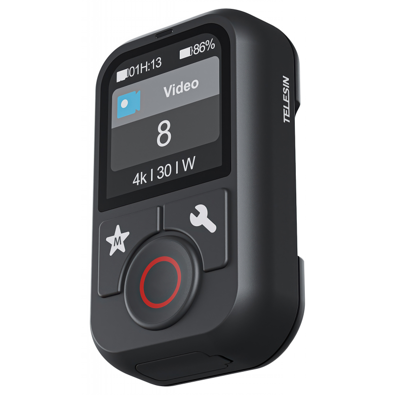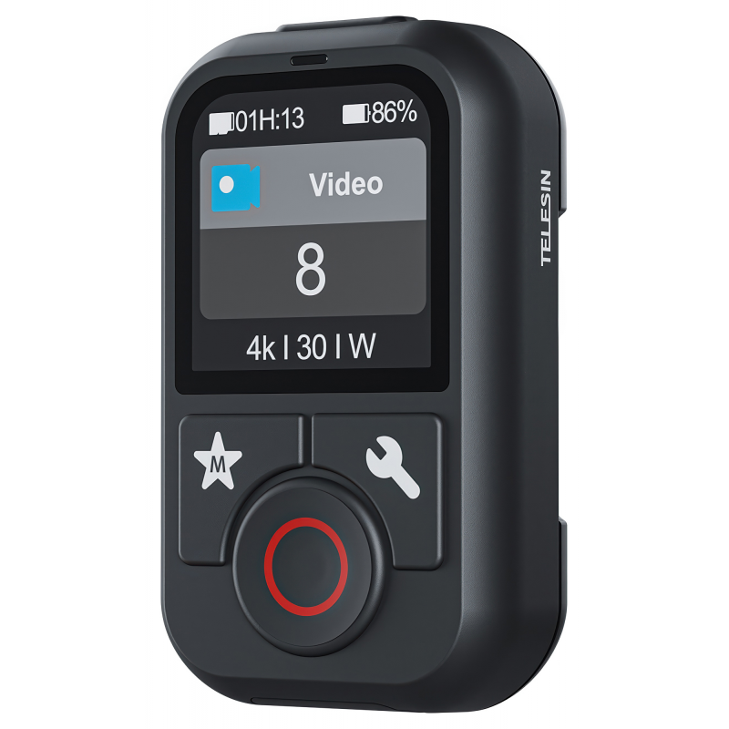 Telesin S5-RMT-01-TGP to pilot Bluetooth nowej generacji, który pozwala sterować kamerą GoPro z odległości nawet 80 metrów – wygodnie, szybko i bez przerywania akcji. Wystarczy jedno kliknięcie, aby przełączyć tryb (zdjęcie, film lub timelapse), rozpocząć nagrywanie albo wyłączyć urządzenie. Intuicyjny interfejs z kolorowym ekranem 1,4” pokazuje nie tylko aktualny tryb pracy, ale też stan baterii, czas nagrania oraz poziom naładowania pilota. To idealne narzędzie do vlogów, sportów i pracy w ruchu.