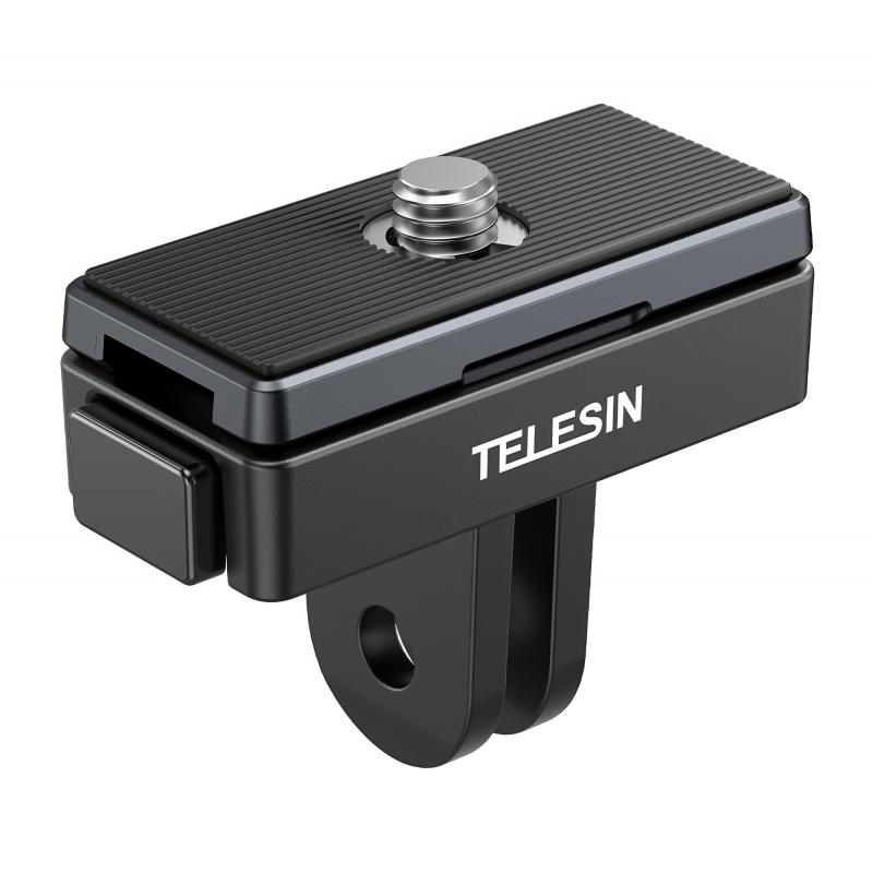 Telesin S7-JBK-18-TIS to nowoczesny adapter montażowy, który upraszcza codzienną pracę z kamerą sportową i nie tylko. Wystarczy raz połączyć urządzenie z metalową płytką za pomocą gwintu 1/4". Bazę montujesz na wybranym akcesorium z mocowaniem GoPro. Od tej chwili zmiana konfiguracji sprzętowej sprowadza się do przyłożenia kamery do bazy, bez konieczności odkręcania śrub. Wszystkim zajmą się mocny magnes i solidne zatrzaski.