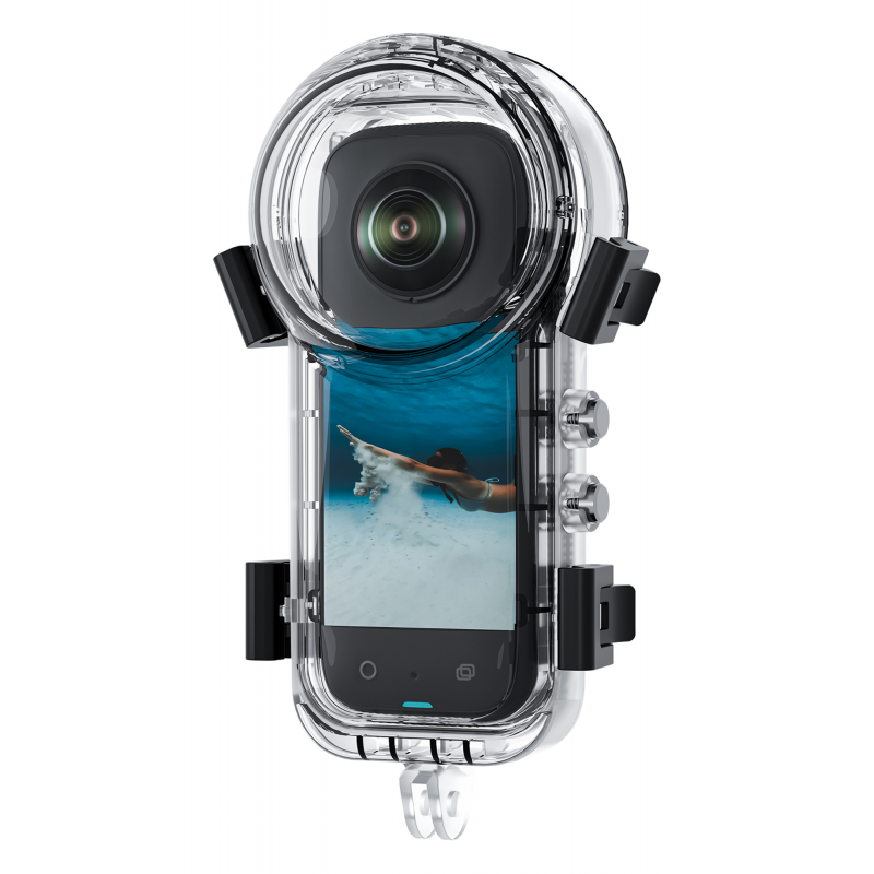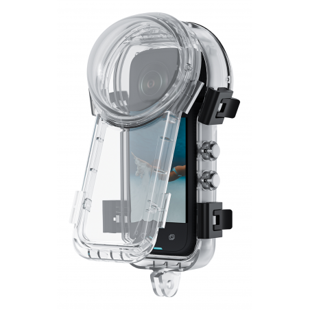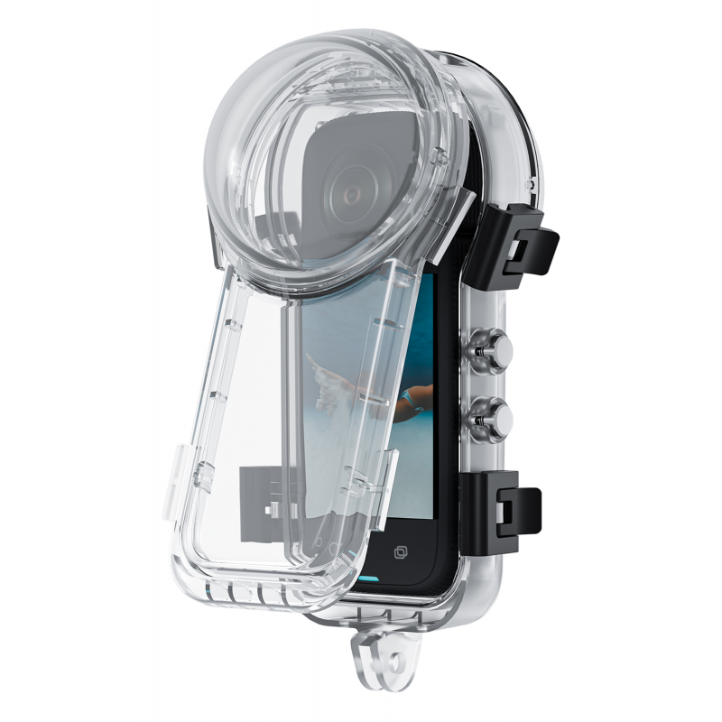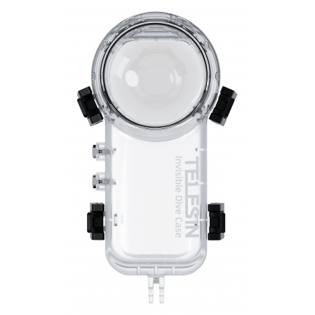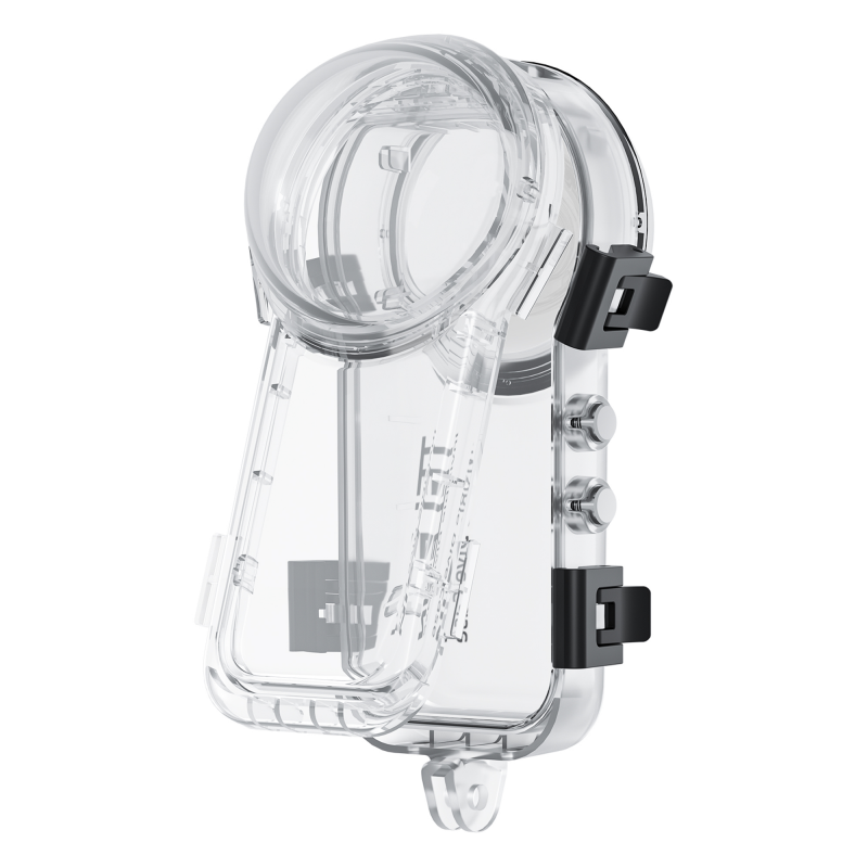 Zewnętrzne przyciski obudowy Telesin S4-WTP-08-TIS są bezpośrednio połączone z przyciskami kamery Insta360 X4. Dzięki temu możesz obsługiwać wszystkie kluczowe funkcje bez konieczności otwierania zatrzasków i wyjmowania urządzenia. Nagrywanie uruchomisz pod wodą jednym przyciskiem. Przezroczysta obudowa umożliwia przy tym stały podgląd ekranu, co ułatwia kontrolę nad ujęciem nawet na głębokości kilkudziesięciu metrów.