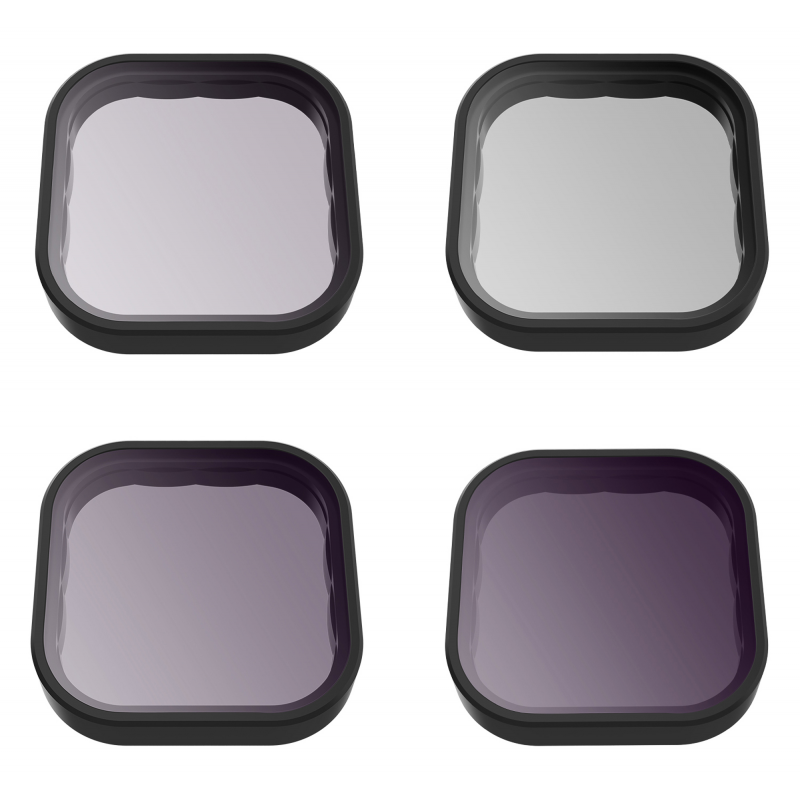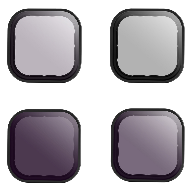 Trzy poziomy gęstości filtrów Telesin GP-FLT-903 pozwalają dopasować stopień redukcji światła do aktualnych warunków oświetleniowych: