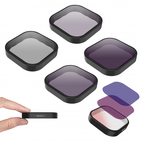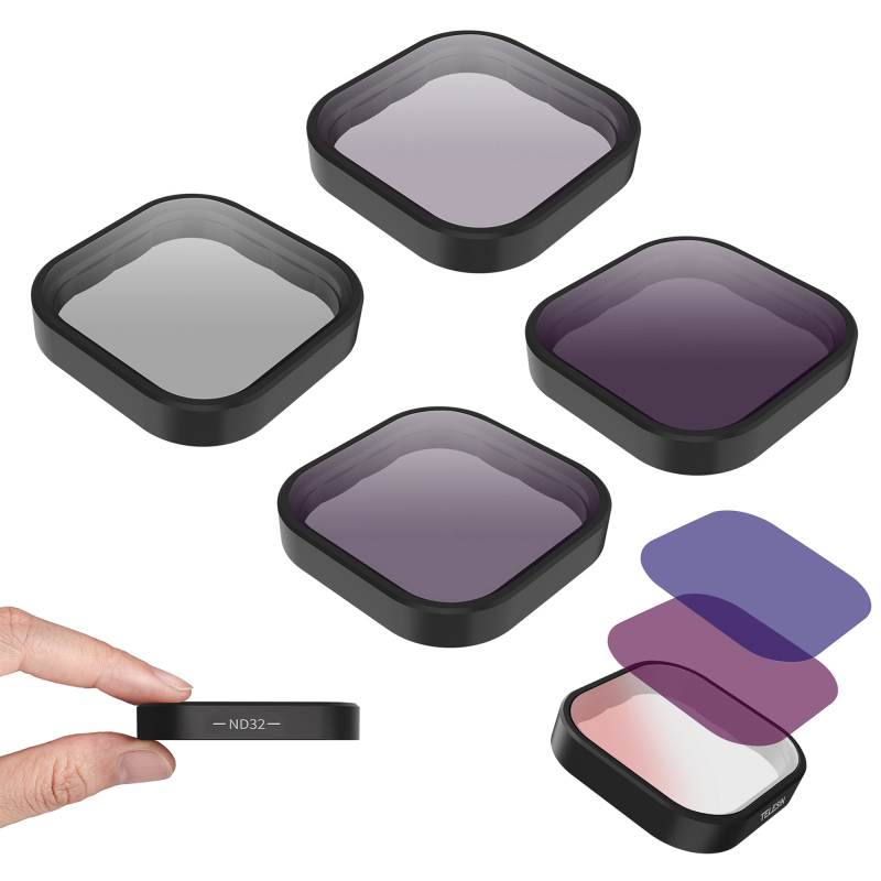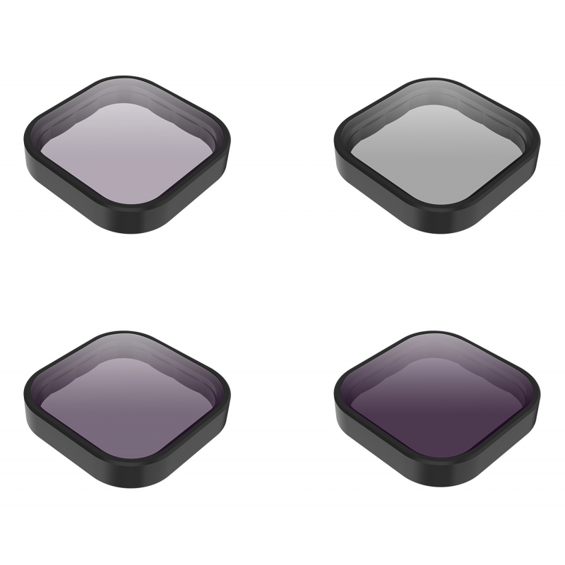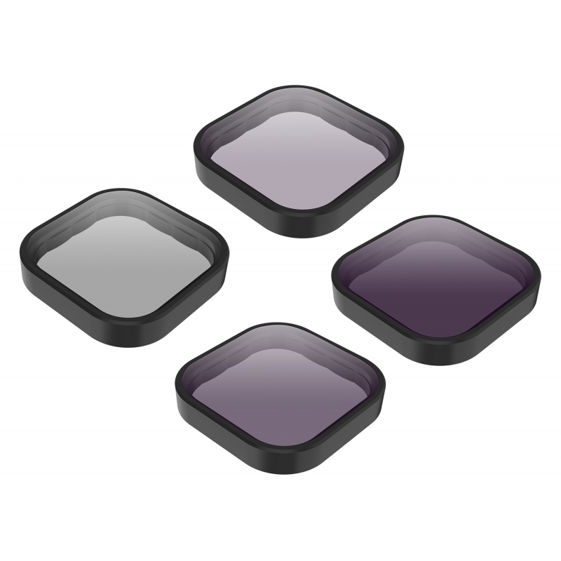 Telesin GP-FLT-903 to zestaw czterech filtrów do kamer GoPro Hero 9, 10, 11 i 12. Obejmuje on trzy filtry szare ND (ND8, ND16 i ND32) oraz filtr polaryzacyjny CPL. Filtry wykonano ze szkła Gorilla Glass pokrytego obustronną powłoką antyrefleksyjną. Ramki z anodyzowanego aluminium zapewniają trwałość i odporność na korozję. Silikonowa uszczelka stabilizuje filtr podczas pracy, zapewniając jednocześnie dodatkową ochronę. Montaż odbywa się bezpośrednio na ramce obiektywu kamery i nie wymaga użycia narzędzi. Cały zestaw waży jedynie 70 g.