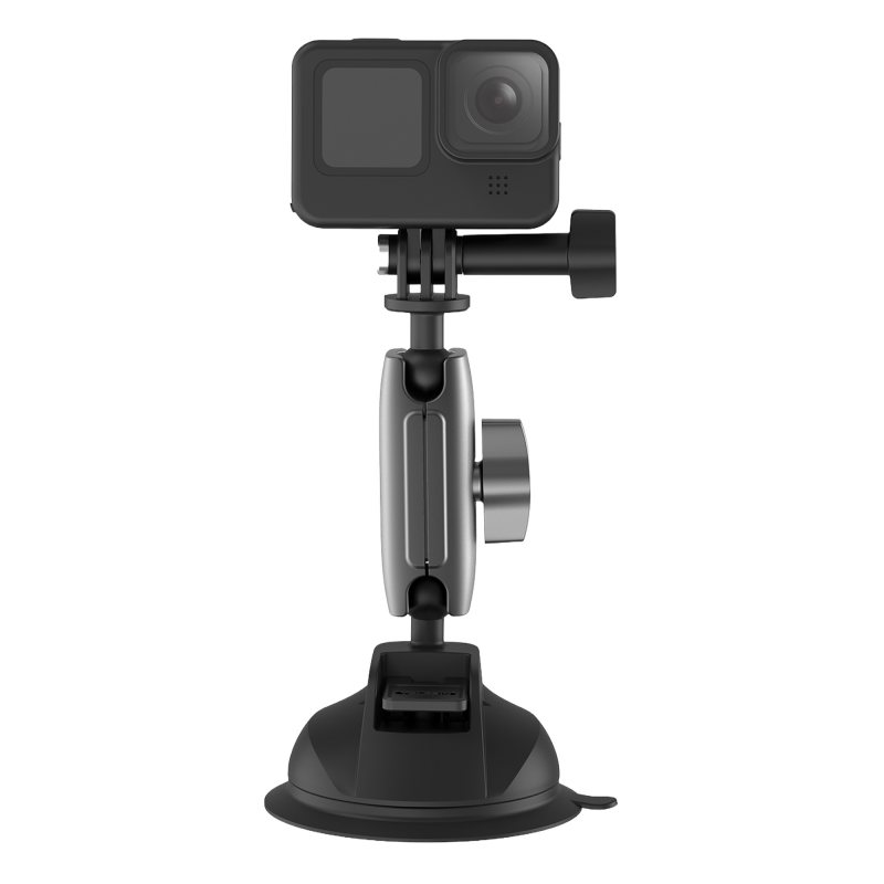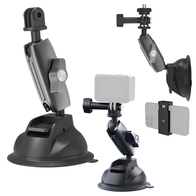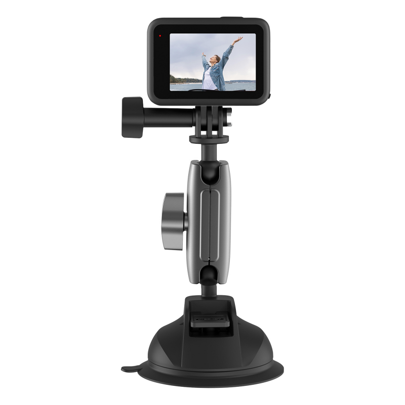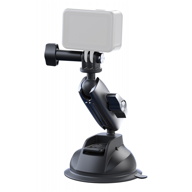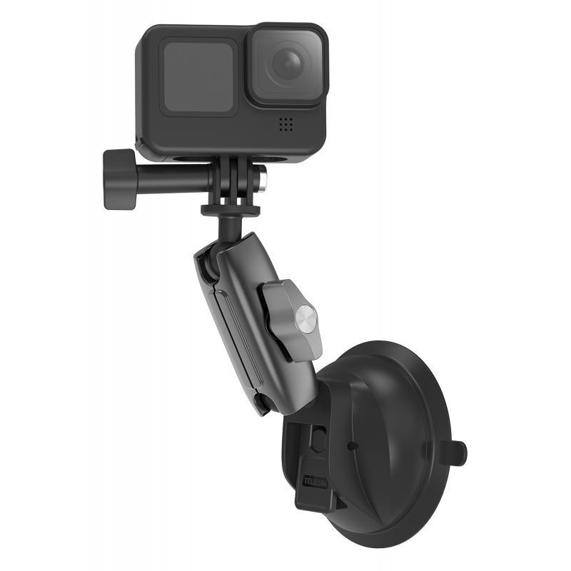 Telesin TE-SUC-010 to uniwersalna przyssawka montażowa do kamer sportowych wykonana ze stali nierdzewnej i aluminium. Podwójna głowica kulowa z jednym pokrętłem zaciskowym pozwala ustawić wybrane urządzenie pod niemal dowolnym kątem i wygodnie zablokować pozycję. Przyssawkę z łatwością przytwierdzisz do każdej gładkiej i czystej powierzchni – szyby samochodu, kafelków czy blatu. Dołączony do zestawu adapter 1/4" zapewnia kompatybilność z kamerami sportowymi bez mocowania GoPro, aparatami kompaktowymi, bezlusterkowcami i uchwytami na smartfon. Bezpieczny maksymalny udźwig przyssawki wynosi 600 g.