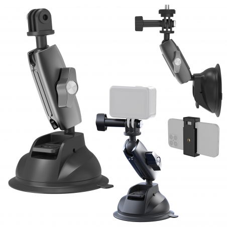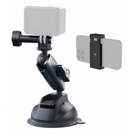 Dzięki mocowaniu GoPro i dołączonemu do zestawu adapterowi na gwint 1/4" przyssawka Telesin TE-SUC-010 współpracuje z dziesiątkami kamer sportowych (m.in. GoPro, Insta360, DJI Osmo Action, Yi i innymi). Do urządzenia można też podłączyć aparat kompaktowy lub bezlusterkowiec o wadze do 600 g, a także uchwyt na smartfon (należy dokupić osobno).