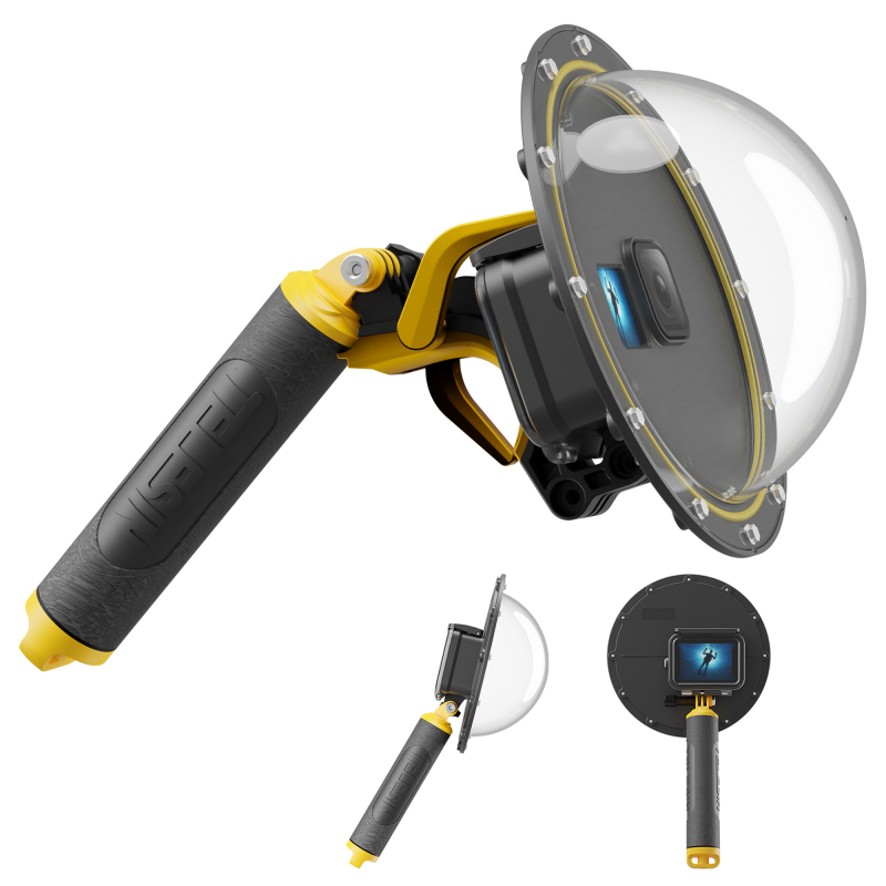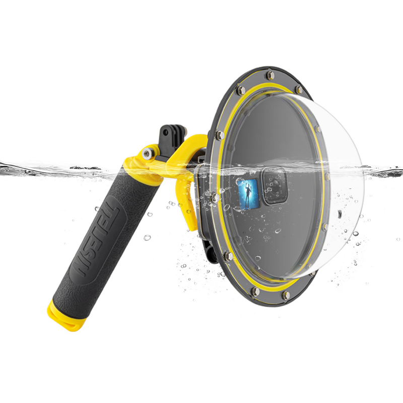 Półkulisty kształt kopuły obudowy Telesin GP-DMP-T09 pozwala kamerze GoPro rejestrować szerokokątny obraz w zakresie 180°. Pod wodą oznacza to możliwość uchwycenia rozległych panoram rafy koralowej, dynamicznych ujęć surfingu czy efektownych kadrów z głębiny w jednym ujęciu. To narzędzie dla twórców, którym nie wystarczają standardowe kadry. Z tą obudową w pełni wykorzystasz możliwości obiektywów w kamerach GoPro.