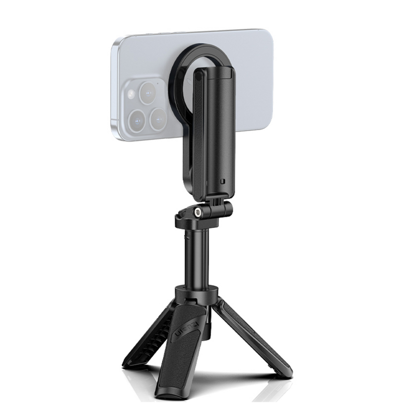 Ulanzi JJ03 to wszechstronne urządzenie 3 w 1, które łączy funkcje selfie sticka, uchwytu ręcznego i statywu. Dzięki zastosowaniu mocnego magnesu zgodnego ze standardem MagSafe błyskawicznie zamocujesz na nim swój smartfon. Dwustronny pierścień magnetyczny pozwala połączyć konstrukcję nie tylko z telefonem, ale także z kompatybilną lampką LED. Teleskopowa konstrukcja i regulowany kąt nachylenia zapewnią idealne kadry w niemal każdej sytuacji. Odpinany od obudowy pilot Bluetooth umożliwia zdalne sterowanie smartfonem z odległości nawet do 10 metrów. Statyw Ulanzi JJ03 waży tylko 125 g i mieści się w kieszeni, dzięki czemu zawsze możesz mieć go pod ręką!