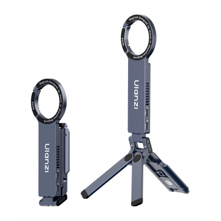 Ulanzi MA58 to uchwyt do smartfona, który łączy funkcje wielozadaniowego statywu z profesjonalną obudową na dysk SSD. To nowoczesne rozwiązanie stworzone z myślą o twórcach, którzy chcą nagrywać materiały 4K ProRes na zewnętrzny nośnik, bez rezygnowania ze swobody pracy. Magnetyczny pierścień umożliwia szybki montaż telefonu w pionie lub poziomie. Kieszeń na dysk M.2 NVMe (2230 i 2242) pozwala ograniczyć liczbę dodatkowych akcesoriów do minimum. Transfer danych odbywa się z prędkością do 10 Gbps, a port Power Delivery (100 W) umożliwia ładowanie telefonu w trakcie nagrywania. Trzy porty USB-C pozwalają jednocześnie podłączyć dysk, zasilanie i dodatkowe akcesorium. Konstrukcja oferuje pięć trybów pracy: stojaka biurkowego, statywu, uchwytu ręcznego, zawieszki oraz mocowania magnetycznego.