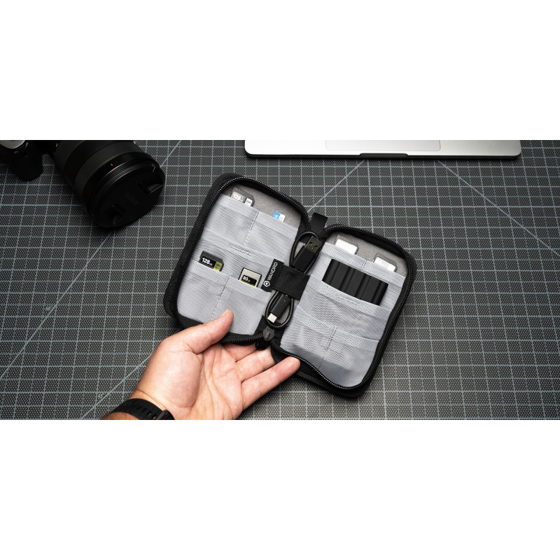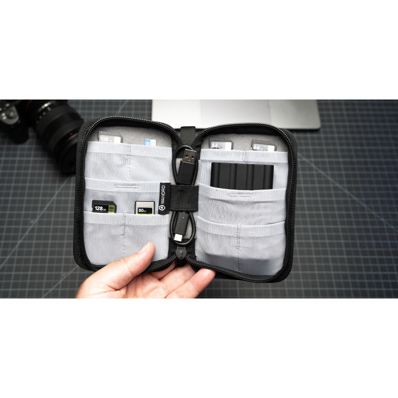 Etui na karty pamięci Wandrd zostało zaprojektowane z myślą o profesjonalistach, którzy chcą mieć pod ręką wszystkie najważniejsze nośniki danych. Osiem kieszonek na karty pamięci umożliwia przechowywanie różnych typów kart, takich jak SD, microSD (w adapterach) czy CF. Dodatkowo dwie specjalne kieszenie na dyski SSD umożliwią bezpieczny transport nośników o większej pojemności. Wszystko to sprawia, że Twój niezbędnik jest zawsze dobrze zorganizowany i gotowy do użycia.