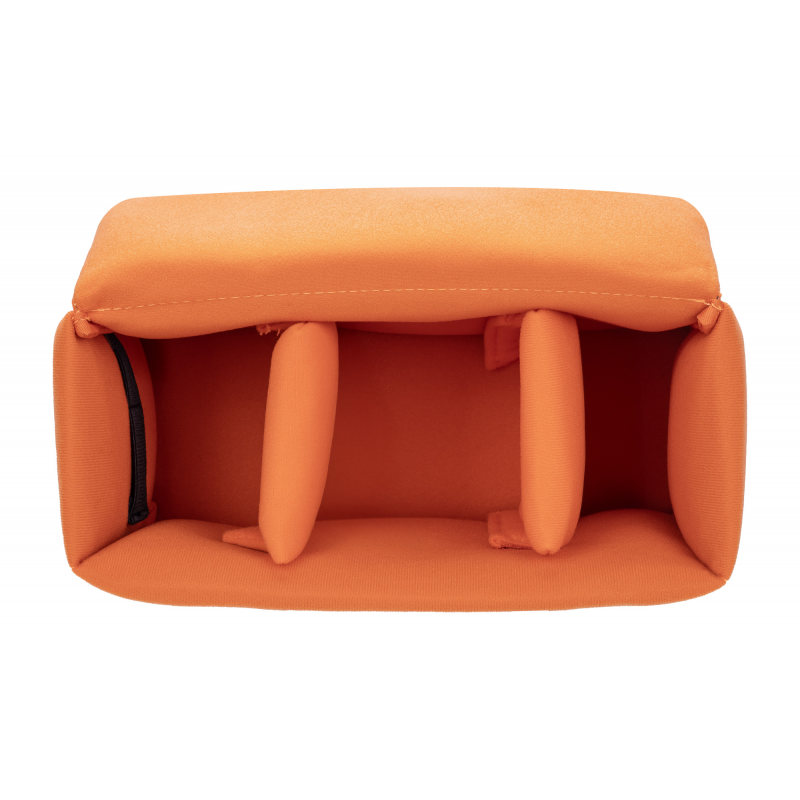 Wkład fotograficzny Camrock Cube 50 o wymiarach 27 x 12 x 19 cm łączy w sobie wygodę przechowywania, ochronę sprzętu i nowoczesny styl. Świetnie sprawdza się jako samodzielne etui lub dodatek do większych toreb fotograficznych, plecaków czy walizek. Dzięki solidnej konstrukcji z tkaniny nylonowej, warstwie gąbki o grubości 3 mm i wytrzymałemu PE, skutecznie chroni sprzęt przed wstrząsami, zarysowaniami oraz kurzem i wilgocią. Wkład pomieści m.in. aparat DSLR z zamocowanym obiektywem, 1-2 dodatkowe obiektywy oraz lampę błyskową. Elastyczne przegrody pozwalają dostosować wnętrze do Twoich potrzeb. Specjalne kieszonki na karty pamięci zapewnia wygodę przechowywania drobnych akcesoriów. Żywy, pomarańczowy kolor nadaje wkładowi nowoczesny wygląd i ułatwia lokalizację w torbie.