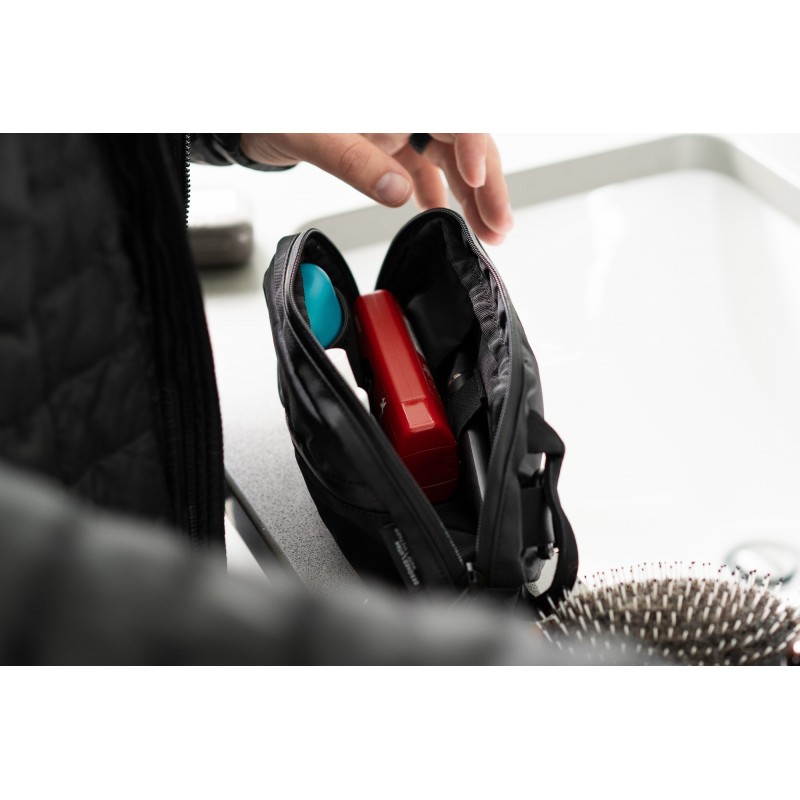 Wewnątrz kosmetyczki znajdziemy specjalne miejsce na szczoteczkę do zębów. Antybakteryjna osłona ochroni główkę szczoteczki przed kontaktem z innymi przyborami toaletowymi. Zadbaj o swoją higienę w dowolnym miejscu na świecie.