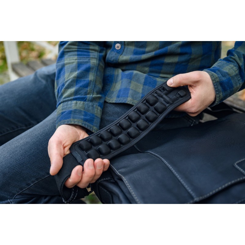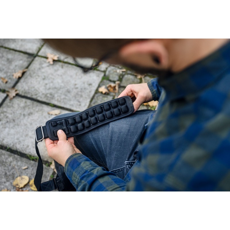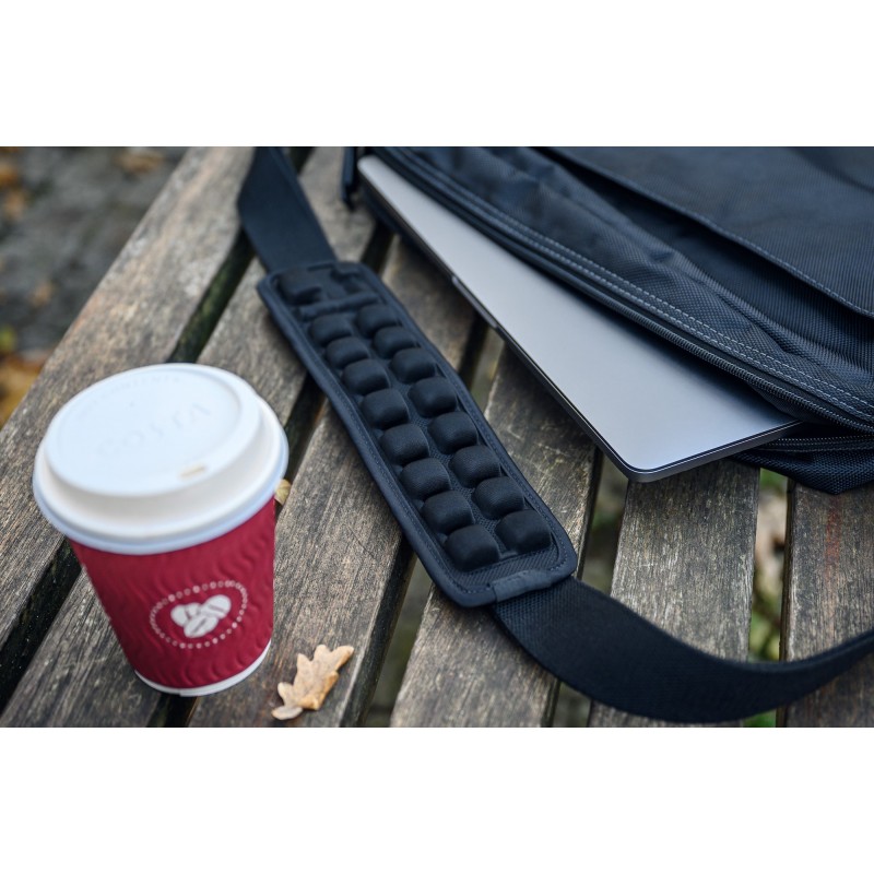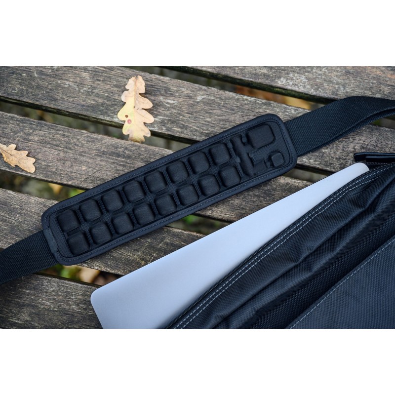 16 połączonych ze sobą komór powietrznych o wysokości 25 mm zaprojektowano w taki sposób, aby jak najlepiej ochronić Twoje ramię przed obtarciami i odparzeniami, a także zmniejszyć dyskomfort związany z długotrwałym noszeniem torby. Ergonomiczny kształt zapewnia nie tylko równomierne rozłożenie ciężaru Twojego bagażu, ale także efektywne odprowadzanie ciepła szczelinami wentylacyjnymi. Takie rozwiązanie idealnie sprawdzi się nie tylko w drodze do pracy lub szkoły, ale także podczas wielodniowych podróży.