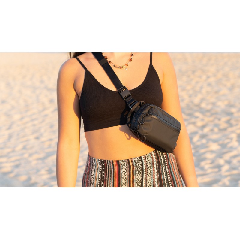 Punkty montażowe, w które wyposażono torby techniczne Wandrd Tech Pouch nie tylko pozwalają łączyć je ze sobą. Wystarczy sięgnąć po pasek Wandrd Carry Strap, aby organizer zamienił się w nerkę lub niezbędnik noszony na biodrach. Dzięki temu uwolnisz swoje dłonie i w wygodny sposób przetransportujesz zawartość saszetki z miejsca na miejsce.