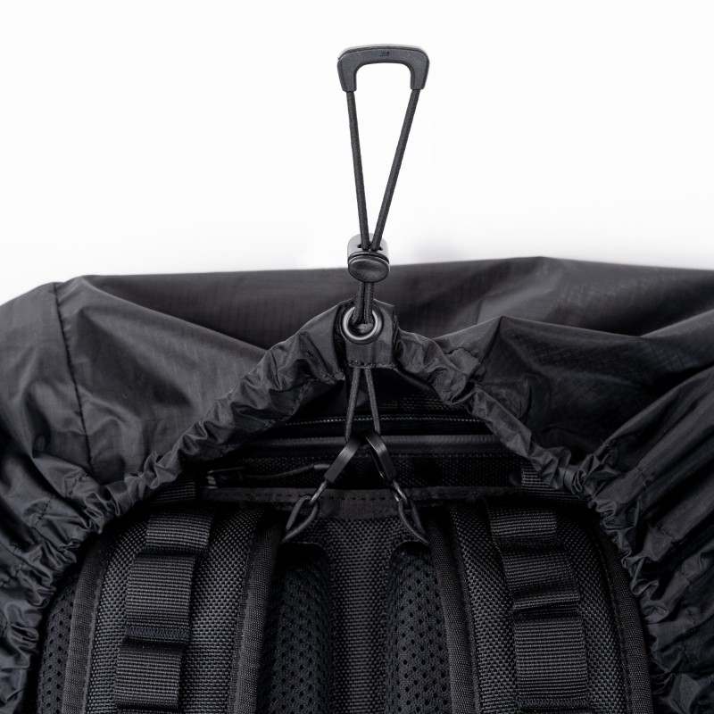 Hak, pętelka, elastyczna taśma i klamra - wszystko po to, aby idealnie dopasować pokrowiec do posiadanej torby lub plecaka. Poprawnie zakotwiczony Rainfly nie ma prawa odlecieć w siną dal nawet podczas huraganowego wiatru lub superszybkiej przejażdżki na motocyklu.