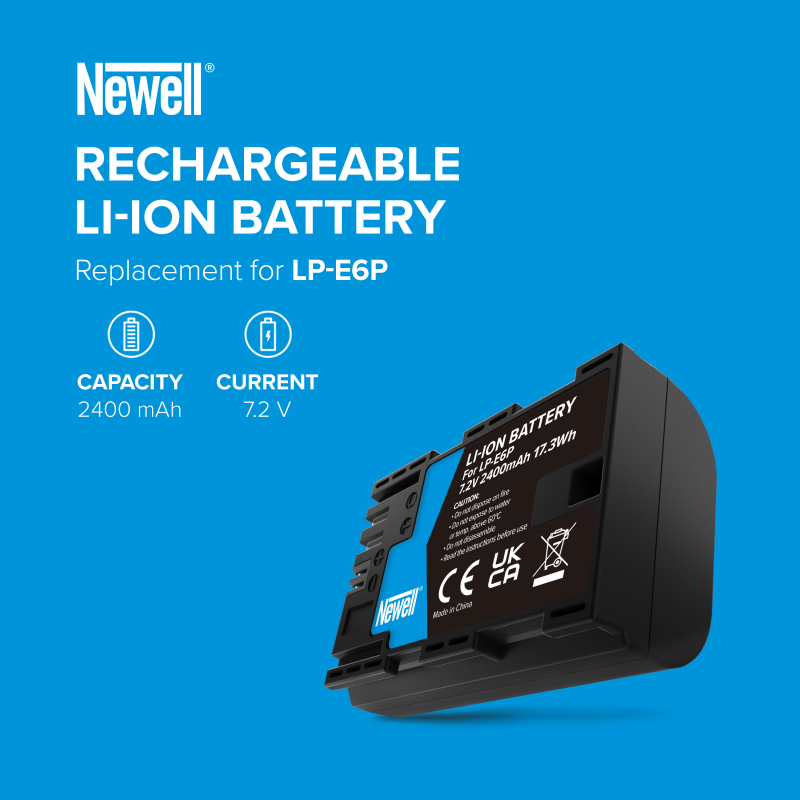 Zamiennik akumulatora Newell LP-E6P to ulepszona wersja popularnego modelu LP-E6. Oferuje 2400 mAh pojemności. Został zaprojektowany specjalnie z myślą o wymaganiach nowoczesnych aparatów, takich jak Canon EOS R5 Mark II. Wsteczna kompatybilność pozwala na stosowanie go również w starszych modelach urządzeń foto-video. Akumulator cechuje się długą żywotnością – jest odporny na liczne cykle ładowania. Brak występowania tzw. "efektu pamięci" pozwala doładowywać ogniwo w dowolnym momencie. Model oferuje również pełną współpracę z oryginalnymi ładowarkami i ich zamiennikami. Zaawansowany system zabezpieczający chroni akumulator przed przegrzaniem, przeciążeniem i przeładowaniem. Produkt objęty 40-miesięczną gwarancją producenta.