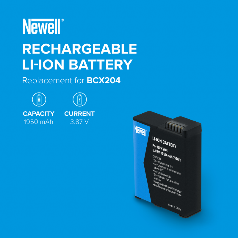 Newell BCX204 to innowacyjny zamiennik akumulatora przeznaczony do kamerek sportowych. Zastosowane w nim ogniwa i nowoczesna elektronika zadowolą nawet najbardziej wymagających użytkowników. Prezentowane ogniwo oferuje 1950 mAh pojemności. Z powodzeniem wykorzystasz je podczas pracy nad filmami. W trosce o bezpieczeństwo użytkowania producent zadbał także o zabezpieczenia przed przegrzaniem, przeciążeniem oraz przeładowaniem. Urządzenie objęto 40-miesięcznym okresem wsparcia.