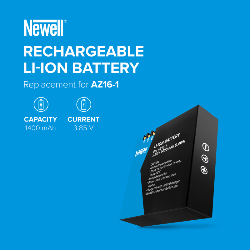 Newell AZ16-1 to innowacyjny zamiennik akumulatora przeznaczony do kamerek sportowych. Zastosowane w nim ogniwa i nowoczesna elektronika zadowolą nawet najbardziej wymagających użytkowników. Prezentowane ogniwo oferuje 1400 mAh pojemności. Z powodzeniem wykorzystasz je podczas pracy nad filmami. W trosce o bezpieczeństwo użytkowania producent zadbał także o zabezpieczenia przed przegrzaniem, przeciążeniem oraz przeładowaniem. Urządzenie objęto 40-miesięcznym okresem wsparcia.