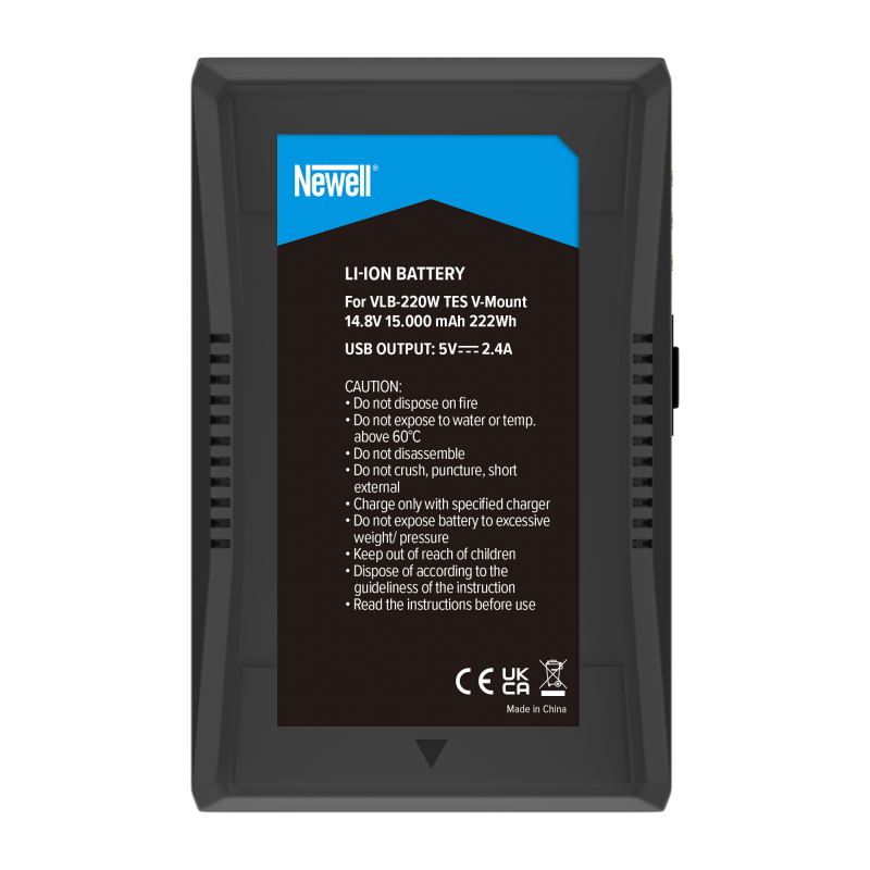Newell VLB-220W TES to akumulator V-Mount, który zapewnia długi czas pracy, bezpieczeństwo i zaawansowaną technologię, a wszystko to w atrakcyjnej cenie i z 40-miesięczną gwarancją producenta. Ogniwo z mocowaniem V-Mount (V-Lock) pasuje do dziesiątek modeli kamer, aparatów oraz różnych typów oświetlenia, co sprawia, że jest to najlepszy wybór, zarówno dla pasjonatów, jak i profesjonalistów.