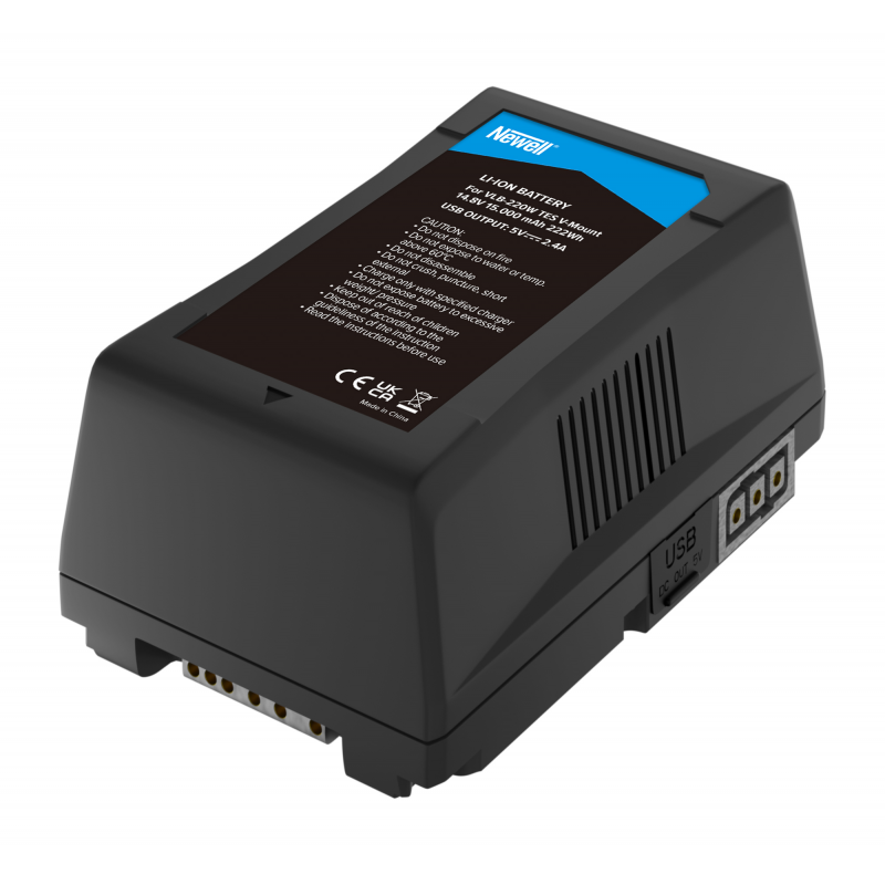 Newell VLB-220W V-Mount to uniwersalny akumulator litowo-jonowy o dużej pojemności (15000 mAh). Gwarantuje niezawodne zasilanie aparatów, kamer i oświetlenia, eliminując konieczność korzystania z kabli i gniazdek elektrycznych. Port D-Tap umożliwi podłączenie do akumulatora setek urządzeń, które nie są kompatybilne z mocowaniem V-Lock. Port USB-A pozwoli zamienić ogniwo w pojemny power bank. Na obudowie nie zabrakło też gniazda DC. Urządzenie wyposażono również we wskaźnik LED, który pozwoli w ciągu sekundy ocenić poziom naładowania. Zabezpieczenia przed przegrzaniem i przeładowaniem oraz 40-miesięczna gwarancja producenta to dodatkowe atuty, które zapewnią jeszcze większy spokój użytkowania.