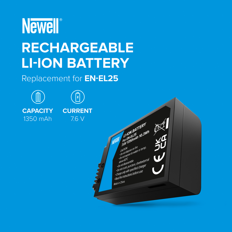 Zamienniki akumulatorów to flagowe produkty marki Newell. Ogniwo EN-EL25 zostało perfekcyjnie dopasowane do komory baterii aparatu oraz do kompatybilnych zewnętrznych ładowarek. Precyzyjne odwzorowanie kształtu oryginalnego ogniwa gwarantuje najwyższy poziom bezpieczeństwa i bezproblemową instalację.