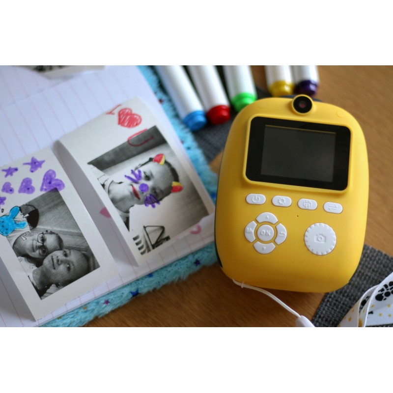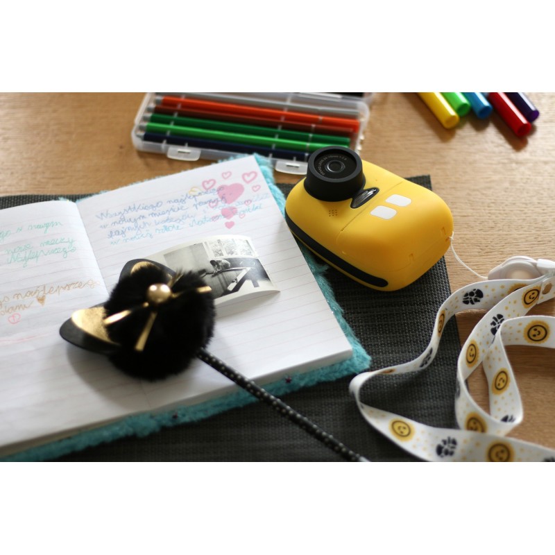 W zestawie wraz z aparatem znajdziesz trzy rolki papieru termicznego, na którym razem z dziećmi wydrukujecie mnóstwo niesamowitych zdjęć. Śmieszne naklejki zapewnią maluchom mnóstwo frajdy, pozwalając na kreatywne przyozdobienie czarno-białych wydruków. Z kolei pasek na aparat ułatwi podróżowanie z urządzeniem i odkrywanie nowych, fantastycznych miejsc do obfotografowania!