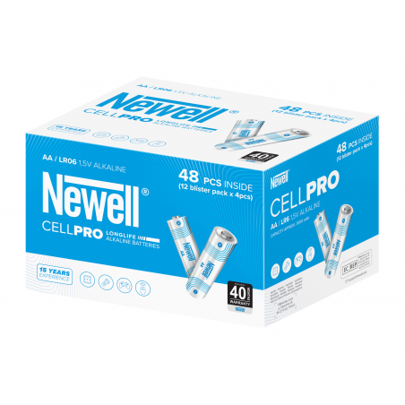 Newell CellPro AA to niezawodne baterie alkaliczne znane również jako LR6 lub po prostu "duże paluszki". Dzięki dużej pojemności i napięciu 1,5 V sprawdzą się w pilotach, zabawkach, padach, latarkach czy myszkach – wszędzie tam, gdzie liczy się stabilne i długotrwałe zasilanie. Baterie są wolne od rtęci, odporne na wycieki i bezpieczne dla urządzeń. Pudełko zawiera 48 ogniw – 12 praktycznych blistrów po 4 sztuki w każdym. Baterie mają aż 10 lat okresu przydatności (od daty produkcji).