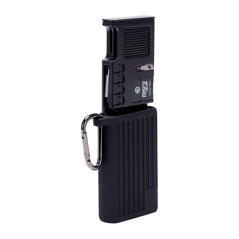 Dzięki kompaktowym wymiarom i dołączonemu do zestawu karabińczykowi czytnik kart pamięci Ulanzi MCR-02 możesz łatwo przypiąć do szlufki lub suwaka. Etui wraz z przechowywanymi kartami jest bezpieczne, a Ty zyskujesz cenną przestrzeń wewnątrz swojego plecaka lub torby. Bez względu na to, czy pracujesz w otoczeniu natury, czy na zatłoczonym evencie w mieście – Ulanzi MCR-02 zawsze dotrzyma Ci kroku, dając wolność i swobodę działania, jakiej potrzebujesz w nowoczesnej, kreatywnej pracy.