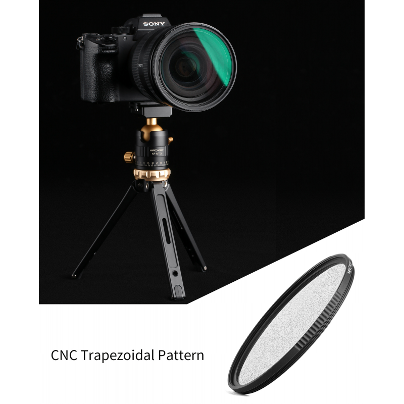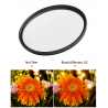 Smukła i lekka aluminiowa ramka, która ma zaledwie 3,3 mm grubości, pozwala skutecznie uniknąć efektu winietowania. Nawet gdy przyjdzie Ci fotografować obiektywem szerokokątnym, na krawędziach zdjęcia nie pojawią się zaciemnienia. Filtr dyfuzyjny K&F Concept Nano-X MRC Black Mist 1/2 - 82 mm zapewni jednolity poziom jasności na całej powierzchni kadru.
