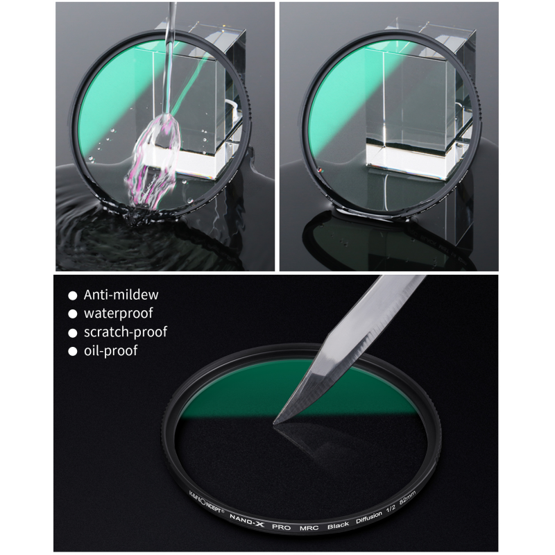 28-warstwowa powłoka to gwarancja trwałości i najlepszej ochrony. Filtr dyfuzyjny K&F Concept Nano-X MRC Black Mist 1/2 jest odporny na zarysowania i posiada właściwości hydrofobowe. Oznacza to, że ze szkła bardzo łatwo usuwa się wodę lub tłuste plamy. Z tym filtrem Twoje zdjęcia zachowają prawdziwe kolory i naturalną głębię.