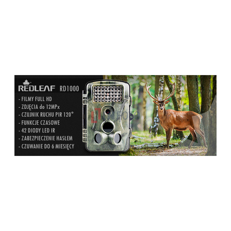 Redleaf RD1000 to kamera typu "fotopułapka". Jej działanie polega na automatycznym rejestrowaniu filmów lub zdjęć, po wykryciu ruchu. Dodatkowo kamera posiada funkcje czasowe, dzięki którym możliwe jest włączanie/wyłączanie nagrywania w określonym czasie, lub/i w określonych interwałach czasowych. Dzięki zastosowaniu 42 sztuk diod święcących w paśmie podczerwieni, możliwe jest rejestrowanie filmów i zdjęć w całkowitej ciemności. Diody posiadają zasięg skuteczny do 20m. Pasmo podczerwieni jest niewidoczne dla ludzkiego oka, więc kamera nie zwraca na siebie uwagi podczas działania. Jest to istotne podczas obserwacji, gdzie "flesz" mógłby spłoszyć zwierzę.