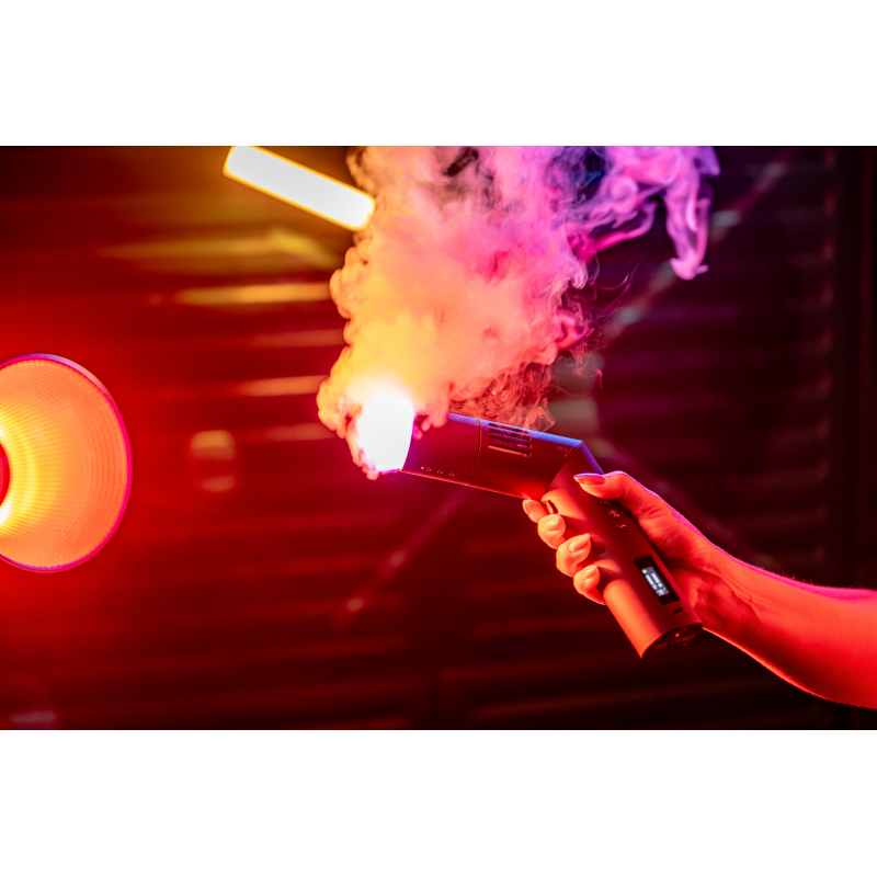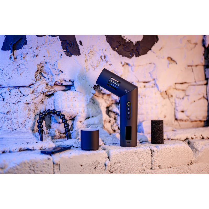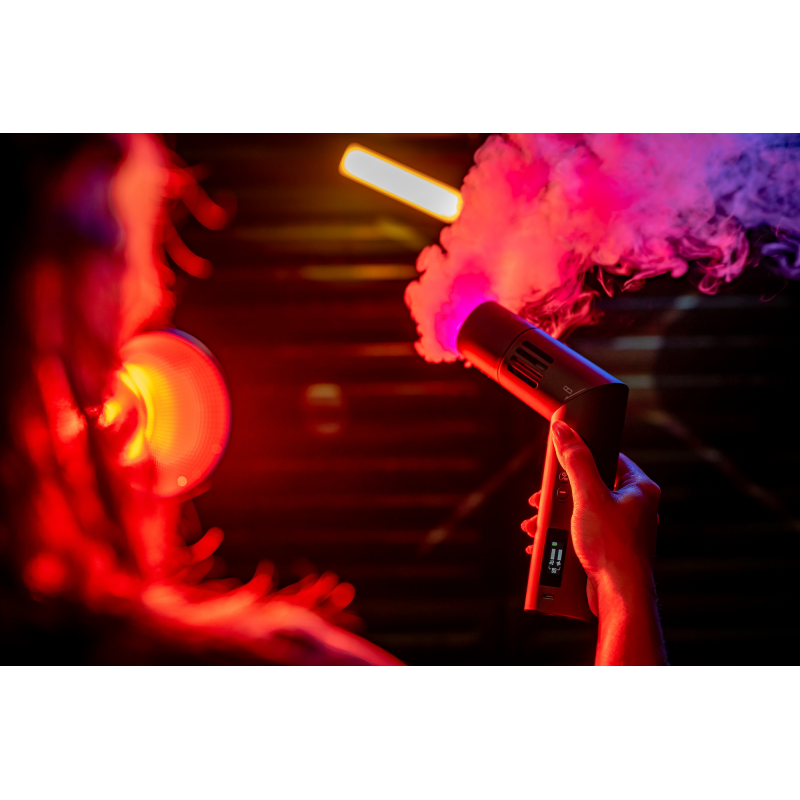 Czym byłby dym bez światła? Newell Mr Mist podchodzi do tego pytania kreatywnie. W zestawie z urządzeniem znajdziesz specjalny magnetyczny moduł z wbudowanym pierścieniem RGB i dodatkowym wentylatorem. Dzięki niemu Twoje kadry staną się jeszcze ciekawsze – od chłodnych, niebieskich tonów po ognistą czerwień. To potężne narzędzie narracyjne, które sprawdza się zarówno w fotografii portretowej, jak i w inscenizowanych kadrach video. Oświetlenie dymu z taką precyzją pozwala uzyskać studyjne efekty, nawet w warunkach domowych, czy plenerowych. Możliwość płynnego dostosowania barwy sprawia, że masz niemal nieograniczony wpływ na nastrój sceny.