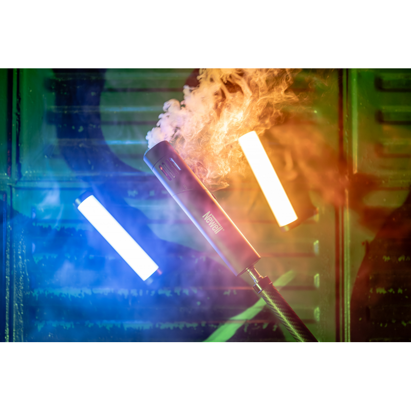 Newell Mr Mist to bezprzewodowy generator dymu zaprojektowany z myślą o twórcach video, fotografach i scenografach. Kompaktowa forma mieści w sobie ogrom możliwości – od subtelnej mgiełki, przez efekt suchego lodu, po gęsty dym jak z teatralnej sceny. Generator wyróżnia się dużą mocą sięgającą 40 W. Urządzenie oferuje niezależną regulację intensywność oraz gęstości aerozolu, zestaw wymiennych końcówek, ruchomą głowicę umożliwiającą zmianę kąta nachylenia, kolorowe podświetlenie RGB oraz pilot zdalnego sterowania. Akumulator zapewnia do 30 minut pracy. Tryb automatyczny umożliwia precyzyjne zaprogramowanie wyrzutów dymu. Mr Mist to także bezpieczeństwo, łatwość obsługi i pełna mobilność. W zestawie nie zabrakło butelki z liquidem pozwalającym rozpocząć pracę od razu po wyjęciu z pudełka.