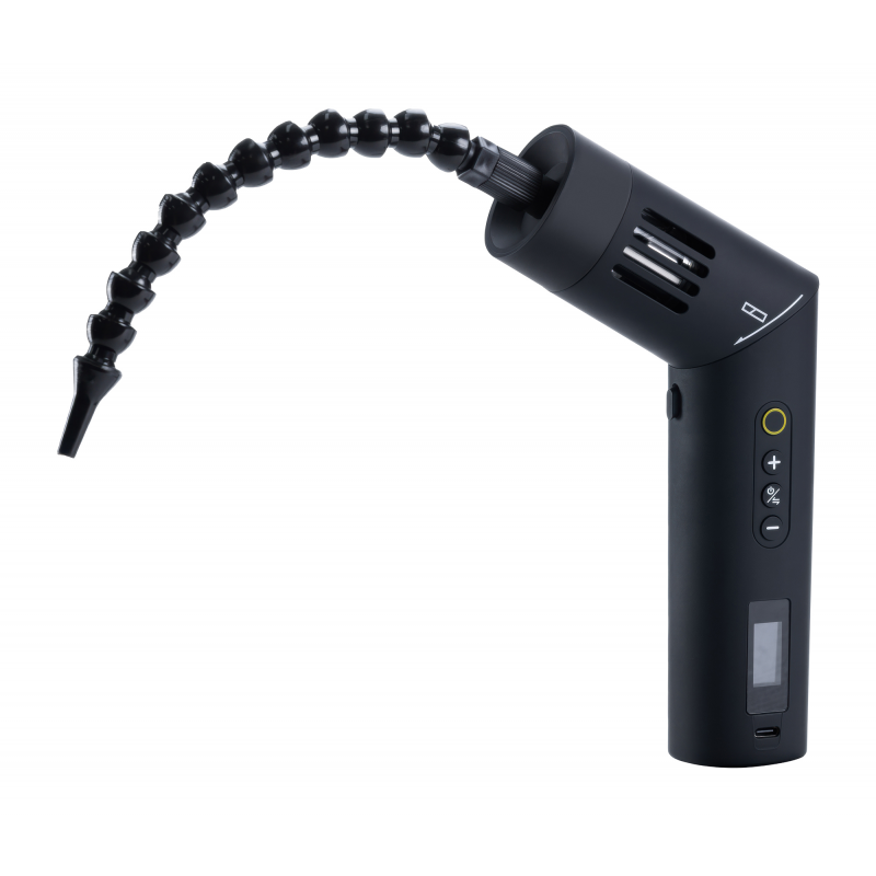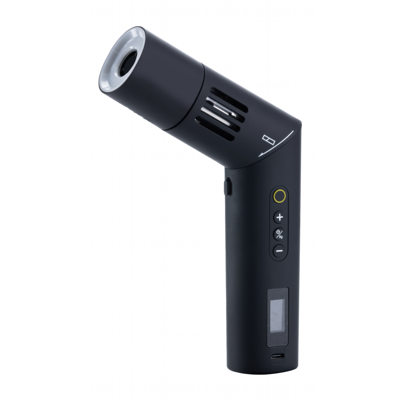 Zamiast pionowej, klasycznej bryły Newell Mr Mist oferuje specjalną odchylaną głowicę, która odróżnia ten generator dymu od produktów konkurencyjnych marek. To detal, który zmienia wszystko. Dzięki 60-stopniowemu zakresowi pochylenia możesz precyzyjnie ukierunkować dym bez niewygodnego manewrowania całym urządzeniem. Chcesz, aby aerozol nie był wypuszczany w górę? Wystarczy zmienić kąt nachylenia głowicy!