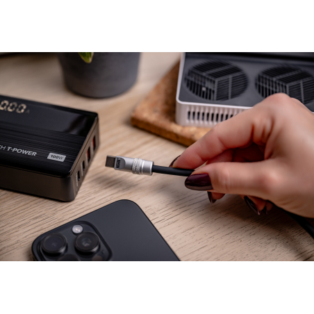 Aby skorzystać z pełnej mocy ładowania 100 W, konieczne jest użycie kompatybilnej ładowarki oraz urządzenia obsługującego technologię Power Delivery o odpowiednich parametrach.