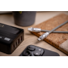 Gdy raz dotkniesz tego kabla, nie będziesz chciał(a) wracać do zwykłych przewodów wykonanych z taniego tworzywa. Silikonowa powłoka jest jednak nie tylko przyjemna w dotyku. Materiał gwarantuje też dużą elastyczność i odporność na splątania. Kabel się nie łamie, nie sztywnieje od niskich temperatur i nie „żyje własnym życiem” podczas zwijania. 5,4 mm grubości to gwarancja ponadprzeciętnej trwałości. Z powodzeniem można go wielokrotnie zwijać, zgniatać w torbie czy ciągnąć po biurku – bez obaw o pęknięcia czy przetarcia. W zestawie znajdziesz też silikonową opaskę, która pozwoli zabezpieczyć kabel po zwinięciu.