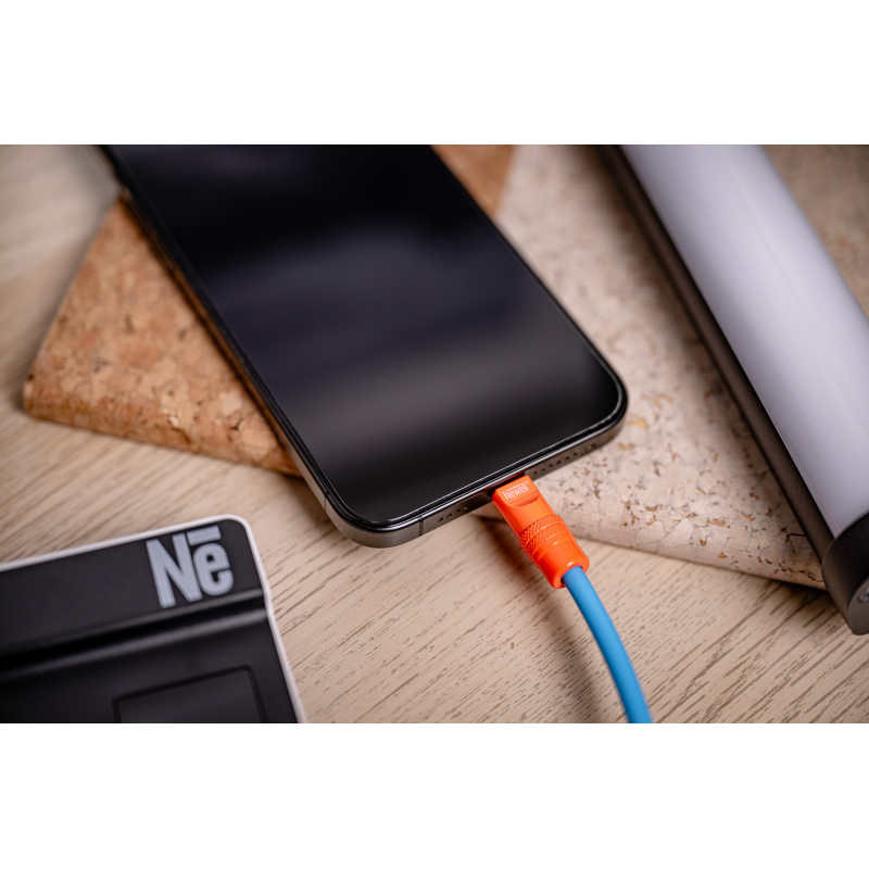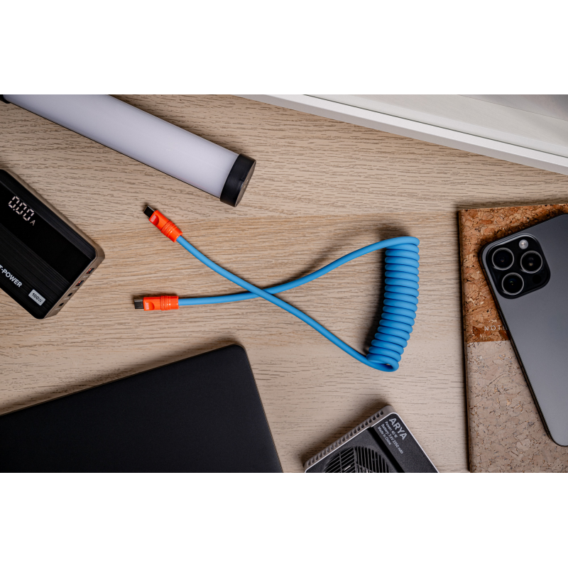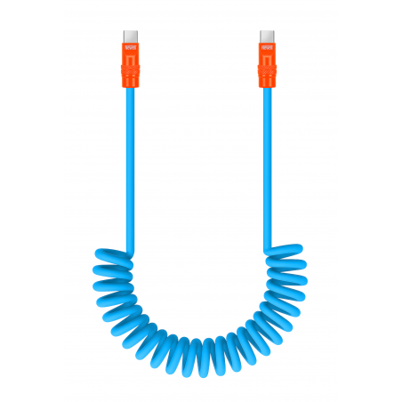 • kabel Newell USB-C - USB-C 100 W, 1,5 m, silikonowy, spiralny, niebiesko-pomarańczowy