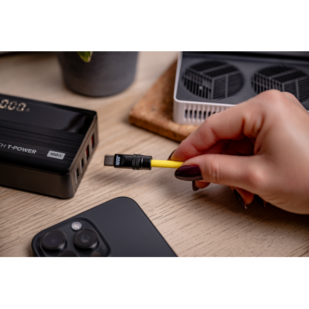 Długość spiralnego kabla Newell USB-C – USB-C 100 W po pełnym rozciągnięciu wynosi 1,5 metra. To wystarczająco dużo, by wygodnie podłączyć laptopa do ładowarki na biurku, sięgnąć z konsoli do powerbanku w plecaku albo swobodnie ładować telefon z gniazdka w aucie. To złoty środek między kompaktowymi wymiarami a zasięgiem – kabel jest krótki wtedy, gdy tego potrzebujesz i długi, kiedy z niego korzystasz.