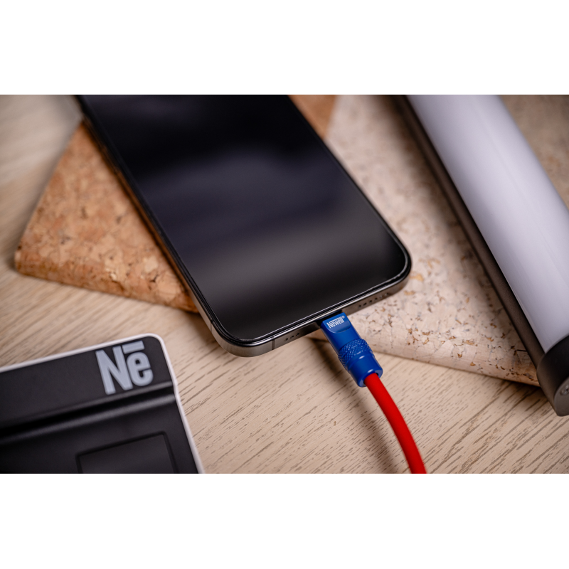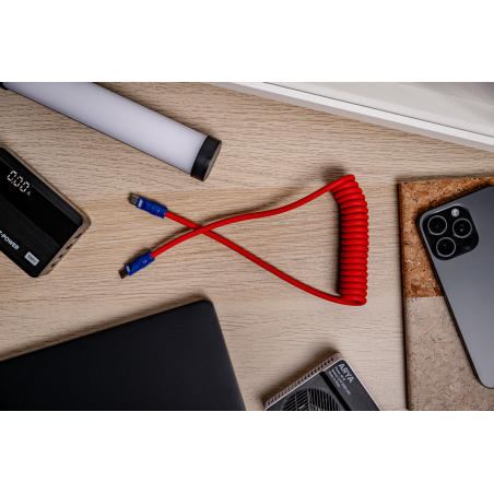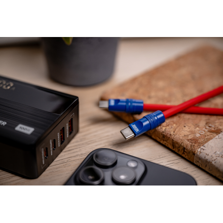 • kabel Newell USB-C - USB-C 100 W, 1,5 m, silikonowy, spiralny, czerwono-granatowy