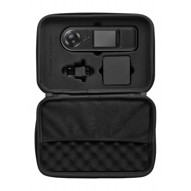 W zestawie z kamerą Kandao QooCam 8K Enterprise otrzymujesz solidne, zapinane na zamek etui transportowe, które pozwala bezpiecznie przechowywać i przewozić kamerę wraz z niezbędnymi akcesoriami. Wnętrze zostało precyzyjnie wyprofilowane, by pomieścić urządzenie, adapter zasilania oraz kabel USB-C, a dodatkowa kieszonka z siatki umożliwia wygodne schowanie kart pamięci, mocowań lub innych drobiazgów. To praktyczne rozwiązanie, które zapewnia ochronę sprzętu w terenie i pomaga utrzymać porządek w każdej sytuacji.