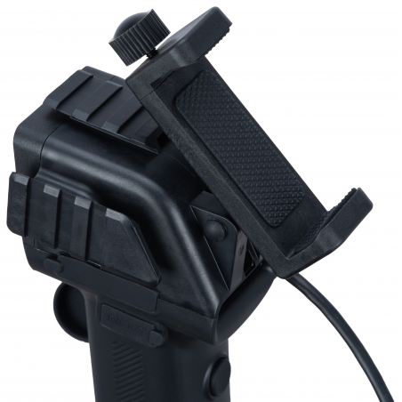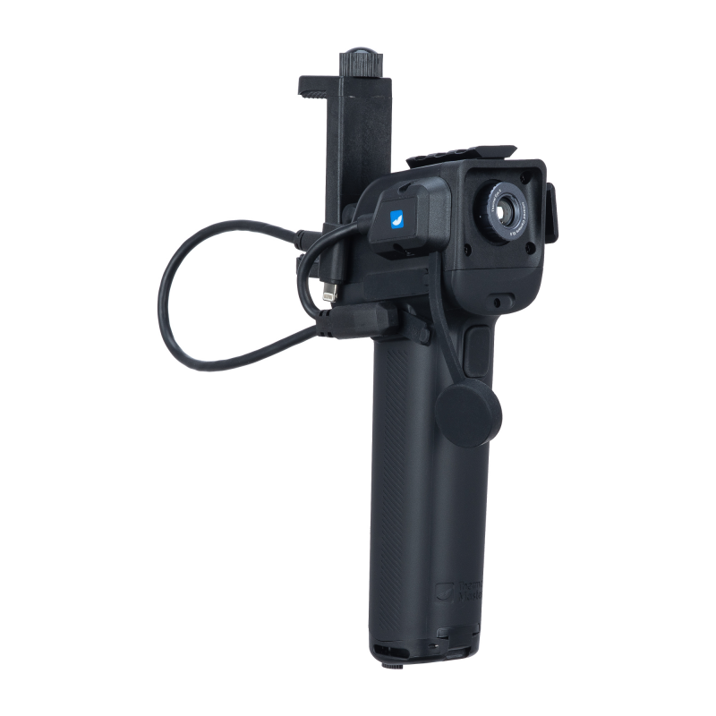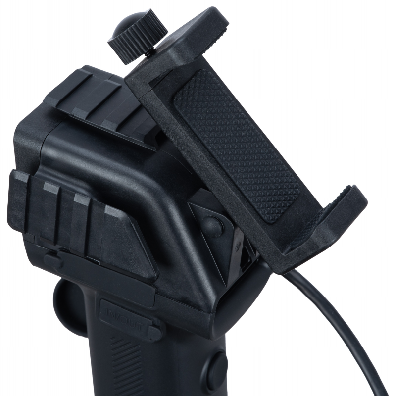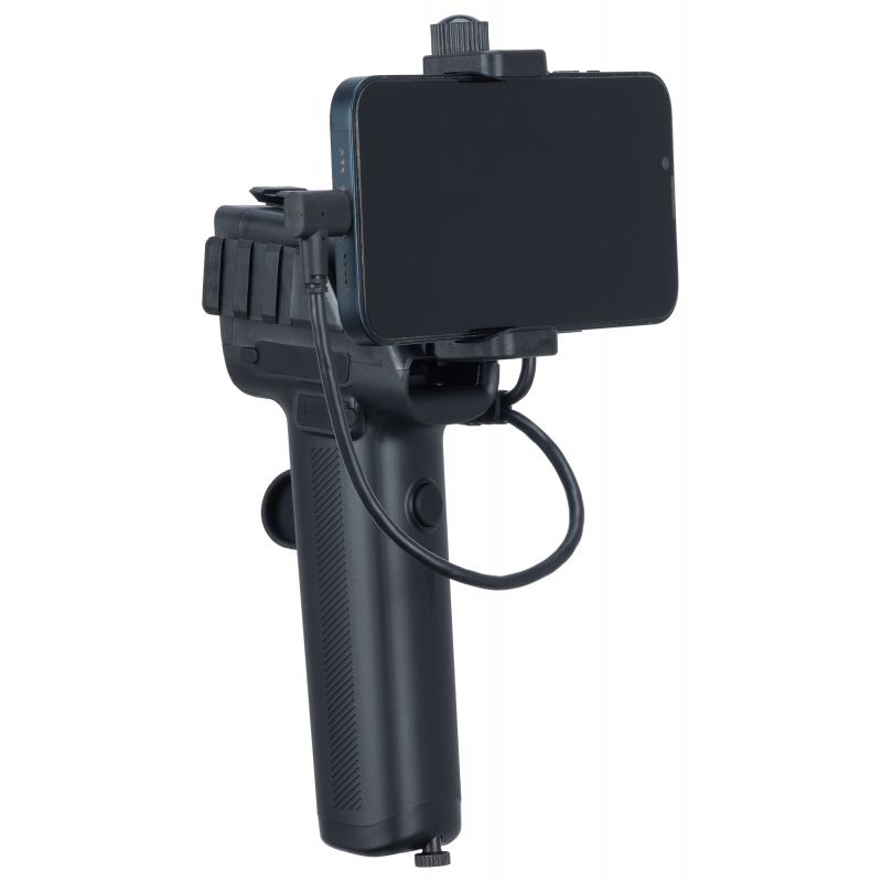 W zestawie z kamerą znajduje się specjalny taktyczny uchwyt ArmorX, który pełni jednocześnie funkcję rączki, stacji dokującej i źródła zasilania. Zaprojektowano ją z myślą o wymagających warunkach terenowych. W jej górnej części umieszczono specjalną obudowę, w której bezpiecznie zadokujesz kamerę Thermal Master X2. Zintegrowany uchwyt na smartfon pozwala stworzyć stabilny, kompaktowy zestaw do obserwacji. Dwie szyny Picatinny umożliwiają montaż akcesoriów – takich jak dalmierz lub latarka. Rączkę wyposażono w 2 przyciski funkcyjne ułatwiające pracę w terenie. Do dyspozycji są też dwa porty USB-C – jeden pozwoli podłączyć się do kamery, drugi posłuży np. do ładowania telefonu. Całość zasilana jest wymiennym akumulatorem 21700 (w zestawie), który zapewnia długi czas pracy i sprawdzi się również jako awaryjne źródło zasilania.