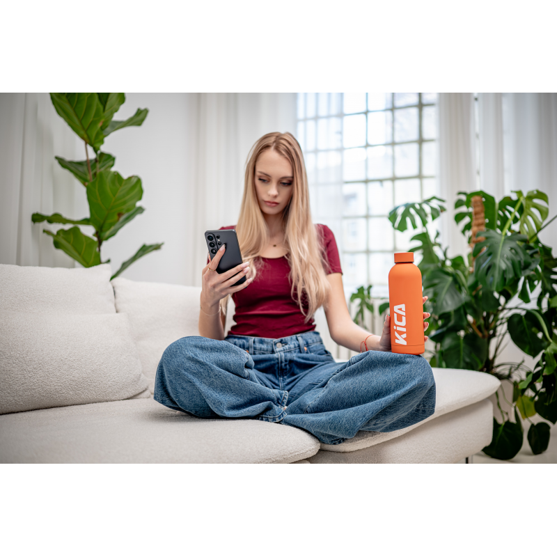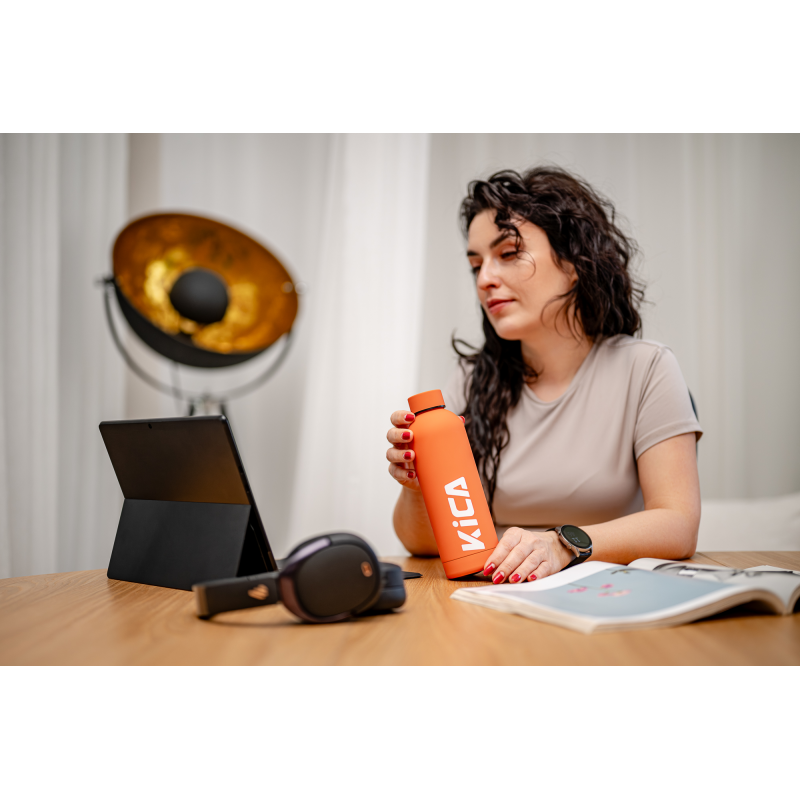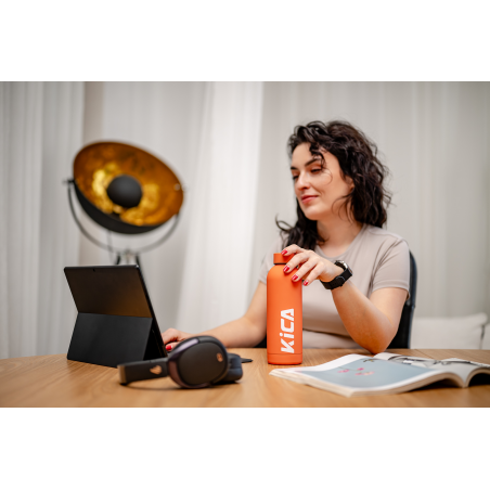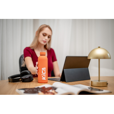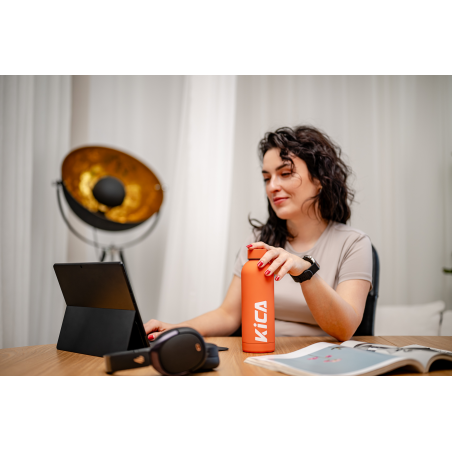 KiCA Active 500 ml to butelka, która łączy minimalistyczny design z codzienną funkcjonalnością. Dobrze prezentuje się zarówno na biurku, jak i w samochodzie, torbie treningowej czy plecaku. Model dostępny jest w dwóch wersjach kolorystycznych: klasycznej – czarnej i bardziej wyrazistej – pomarańczowej. Niezależnie od koloru, KiCA Active 500 ml to ten typ butelki, która odnajdzie się w niemal każdej sytuacji.