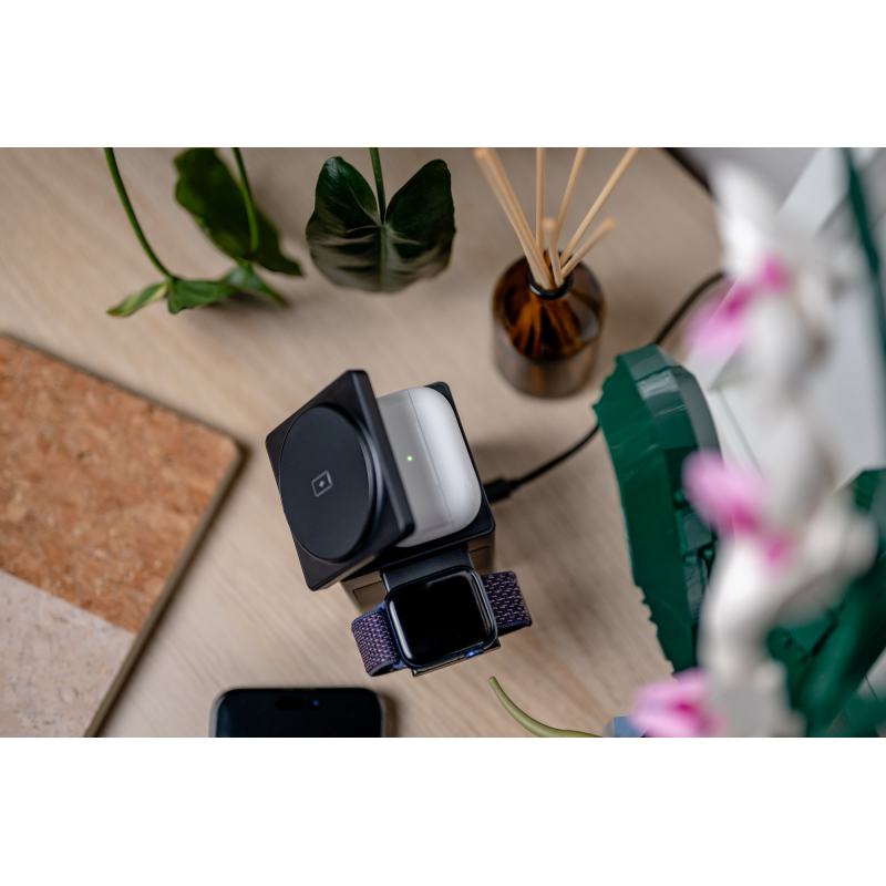 Choć Newell induOne MagPlay idealnie współpracuje z ekosystemem Apple, nie oznacza to, że posiadacze urządzeń innych marek muszą sięgnąć po inną ładowarkę. Ta wielofunkcyjna stacja świetnie poradzi sobie również z telefonami z Androidem, wyposażonymi w funkcję ładowania indukcyjnego Qi. Wystarczy założyć kompatybilne etui lub przykleić do smartfona pierścień MagSafe. To jednak nie wszystko. Ładowarka induOne MagPlay z powodzeniem naładuje też większość słuchawek TWS z etui wspierającym ładowanie bezprzewodowe. Będą to więc nie tylko kompatybilne modele Apple AirPods, ale także Samsung Galaxy Buds, Huawei Freebuds i wiele innych.
